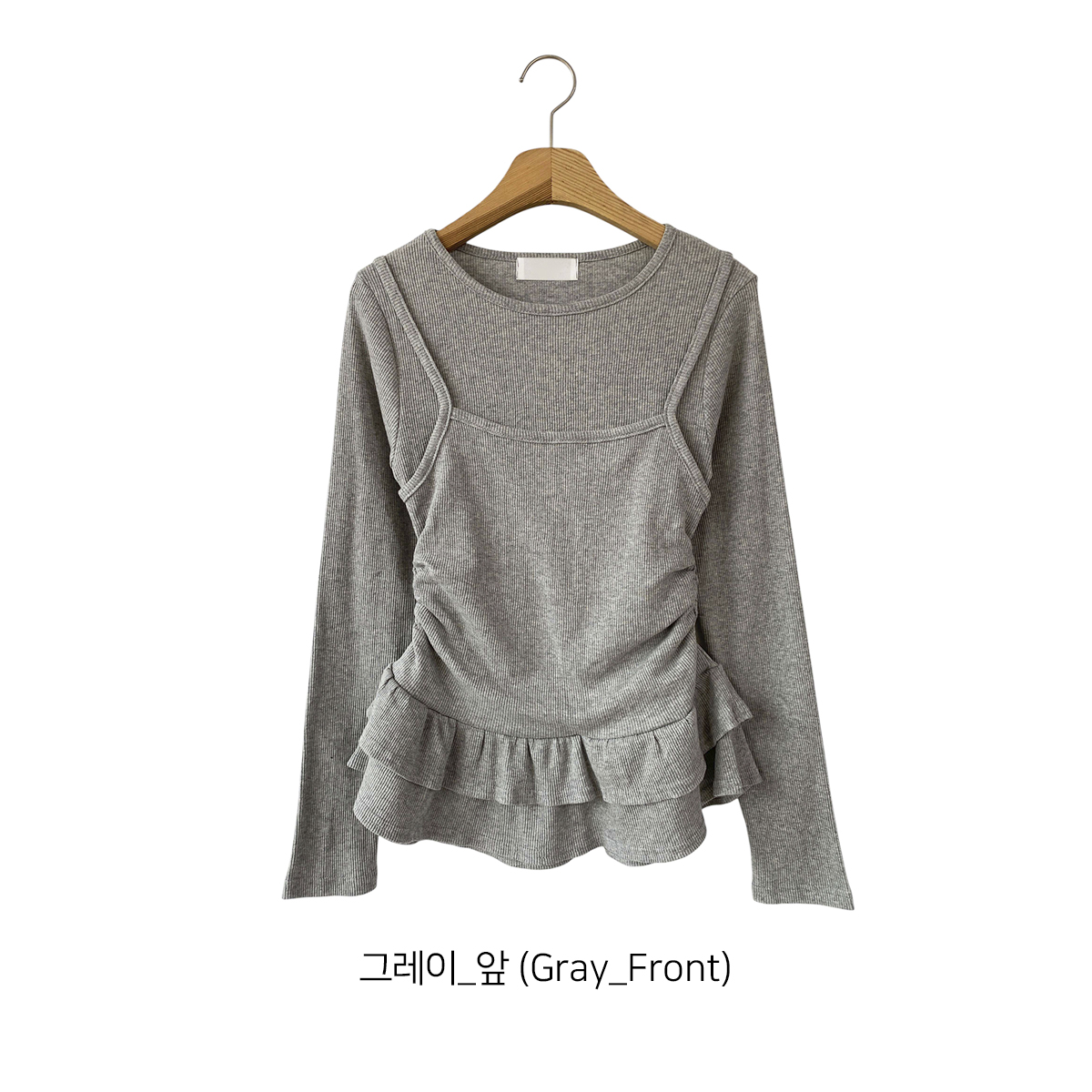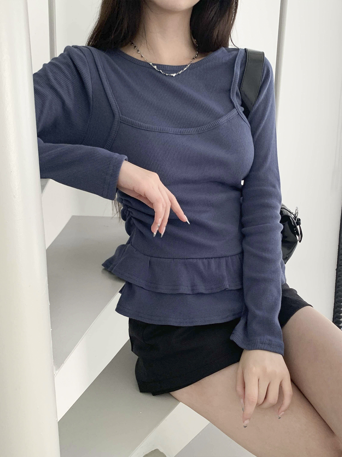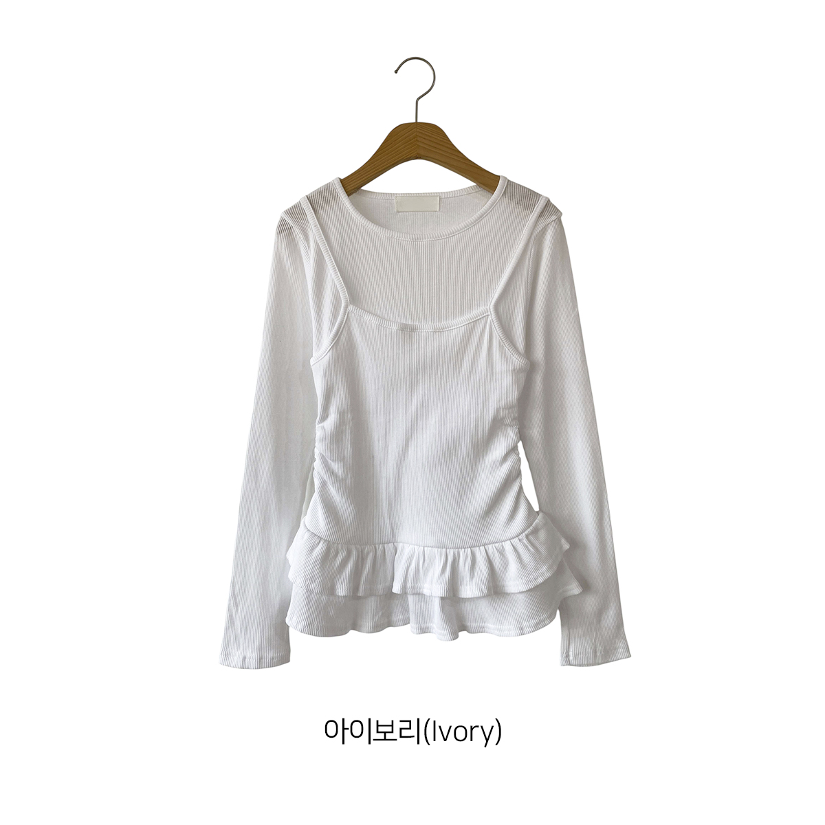 나시와 티가 일체형으로 디자인된 골지 긴팔 티셔츠입니다~