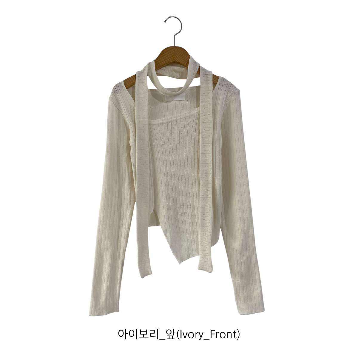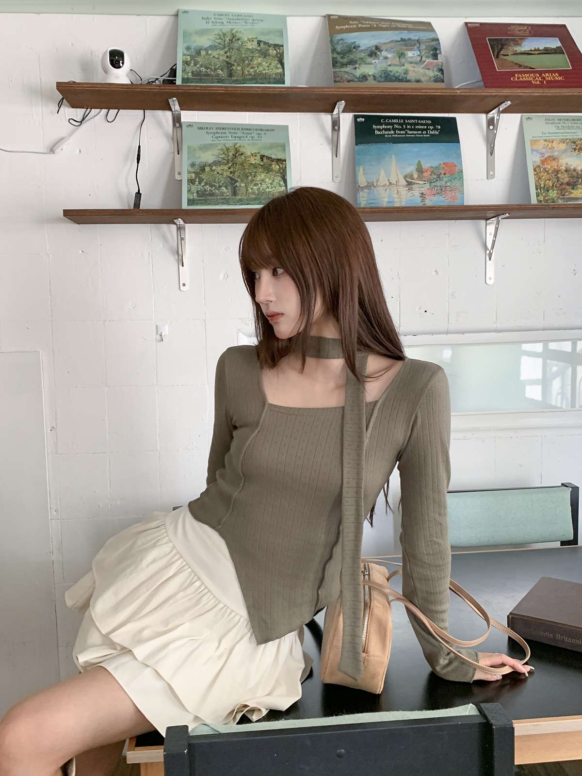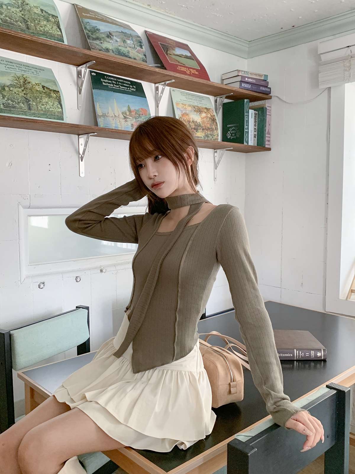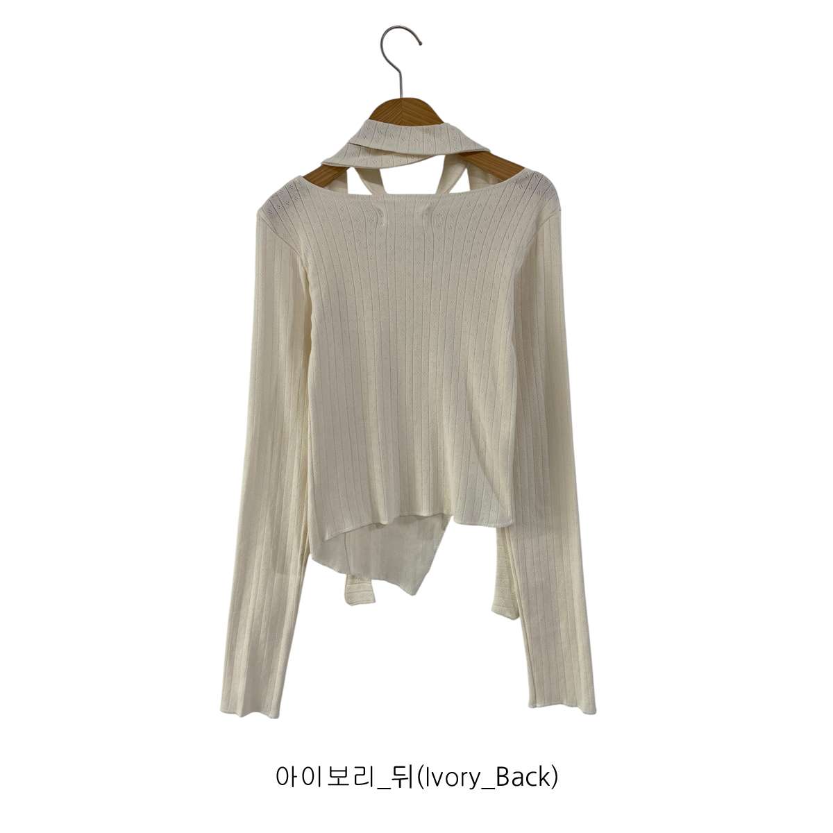 밑단 언발 트임과 키치한 무드의 스트랩 초커가 포인트 되는 니트