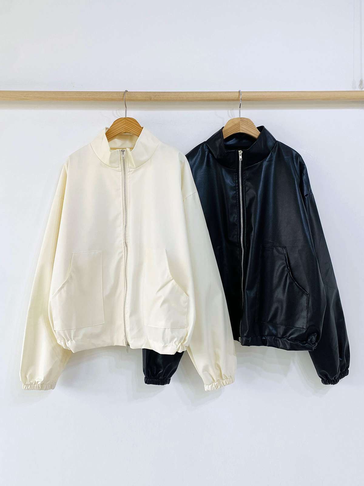 시크하고 모던한 무드를 연출하는 레더 소재의 집업 자켓입니다!