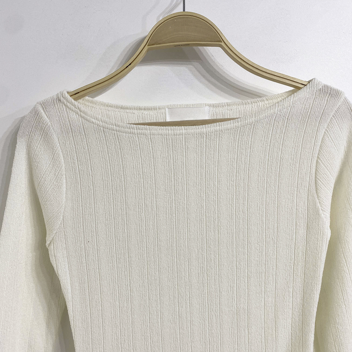 넓은 넥라인과 밑단 프릴이 포인트이며,