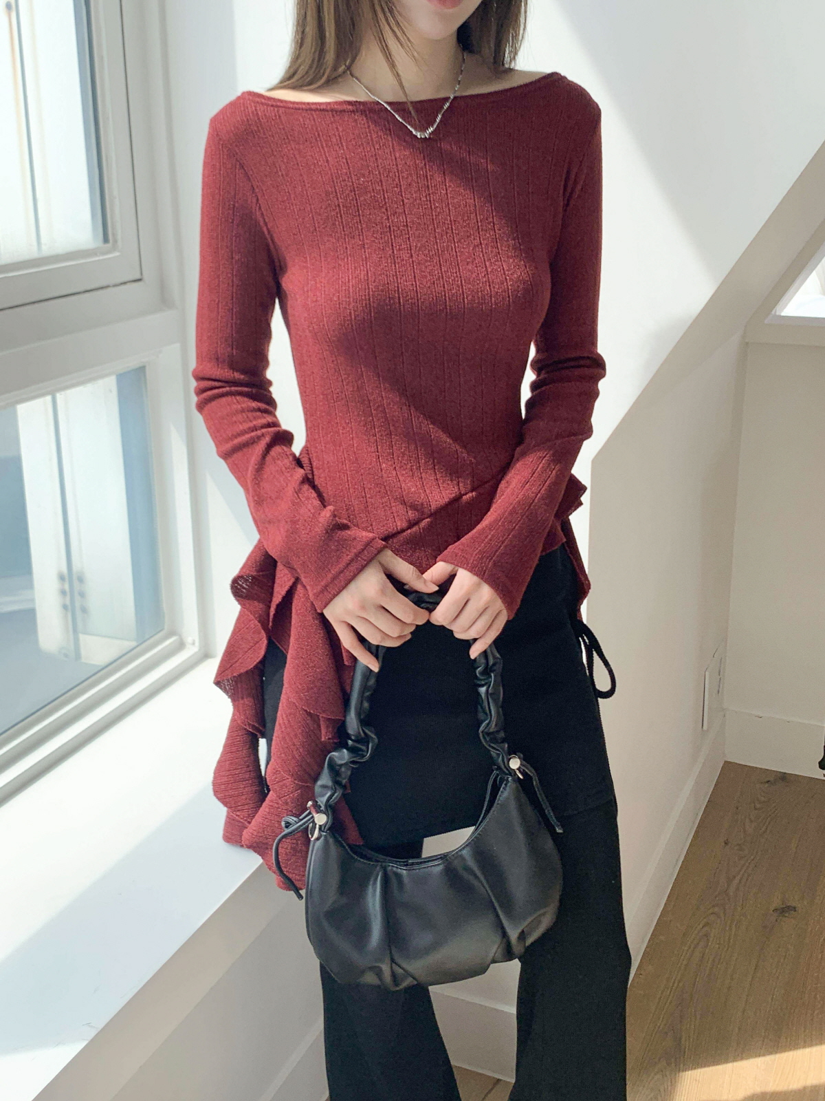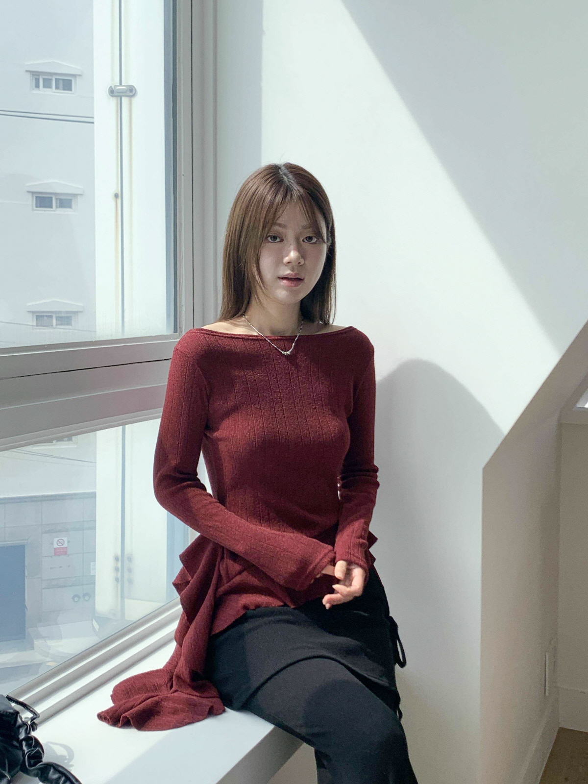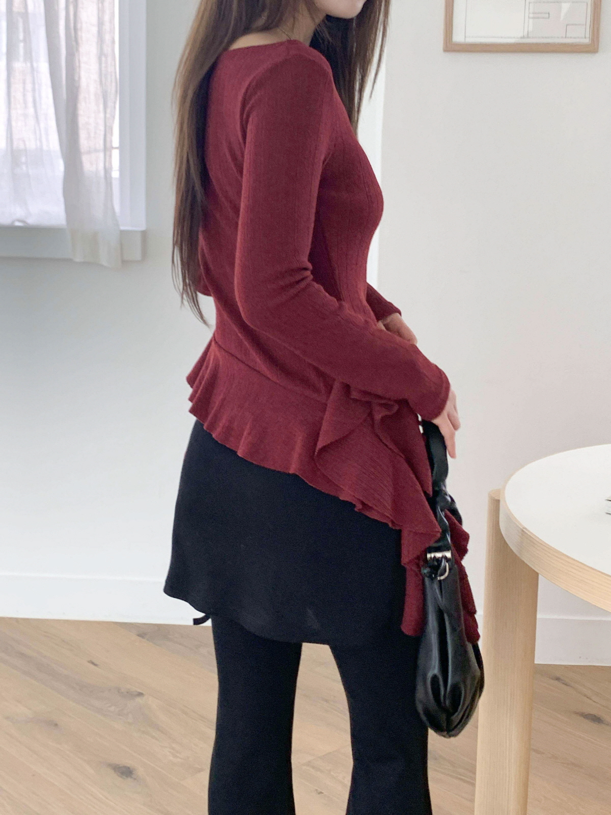 사랑스러운 무드의 밑단 프릴이 포인트인 데일리 니트