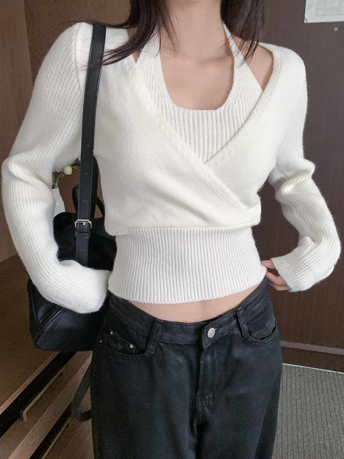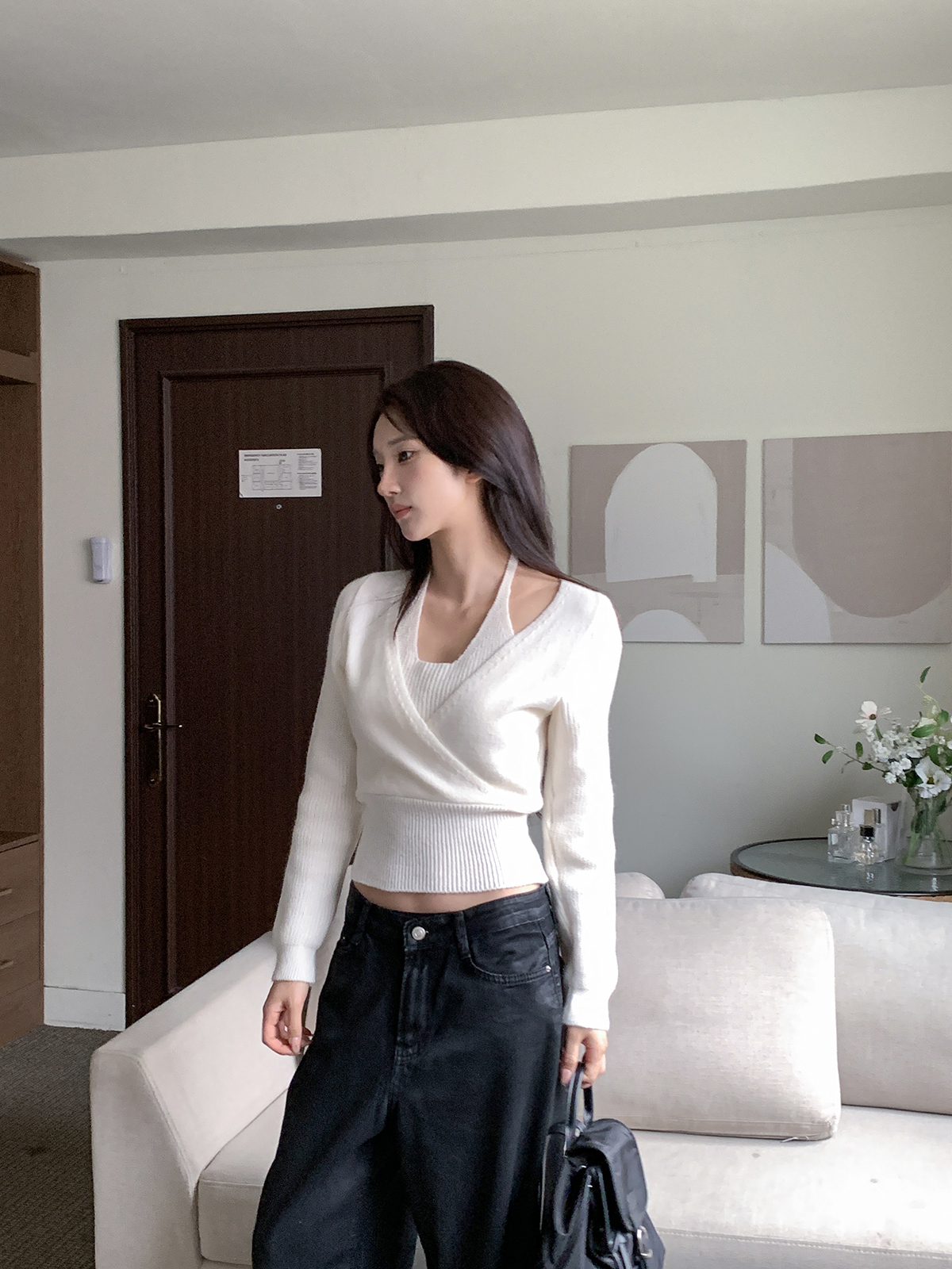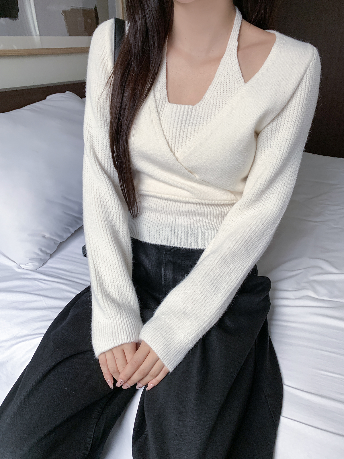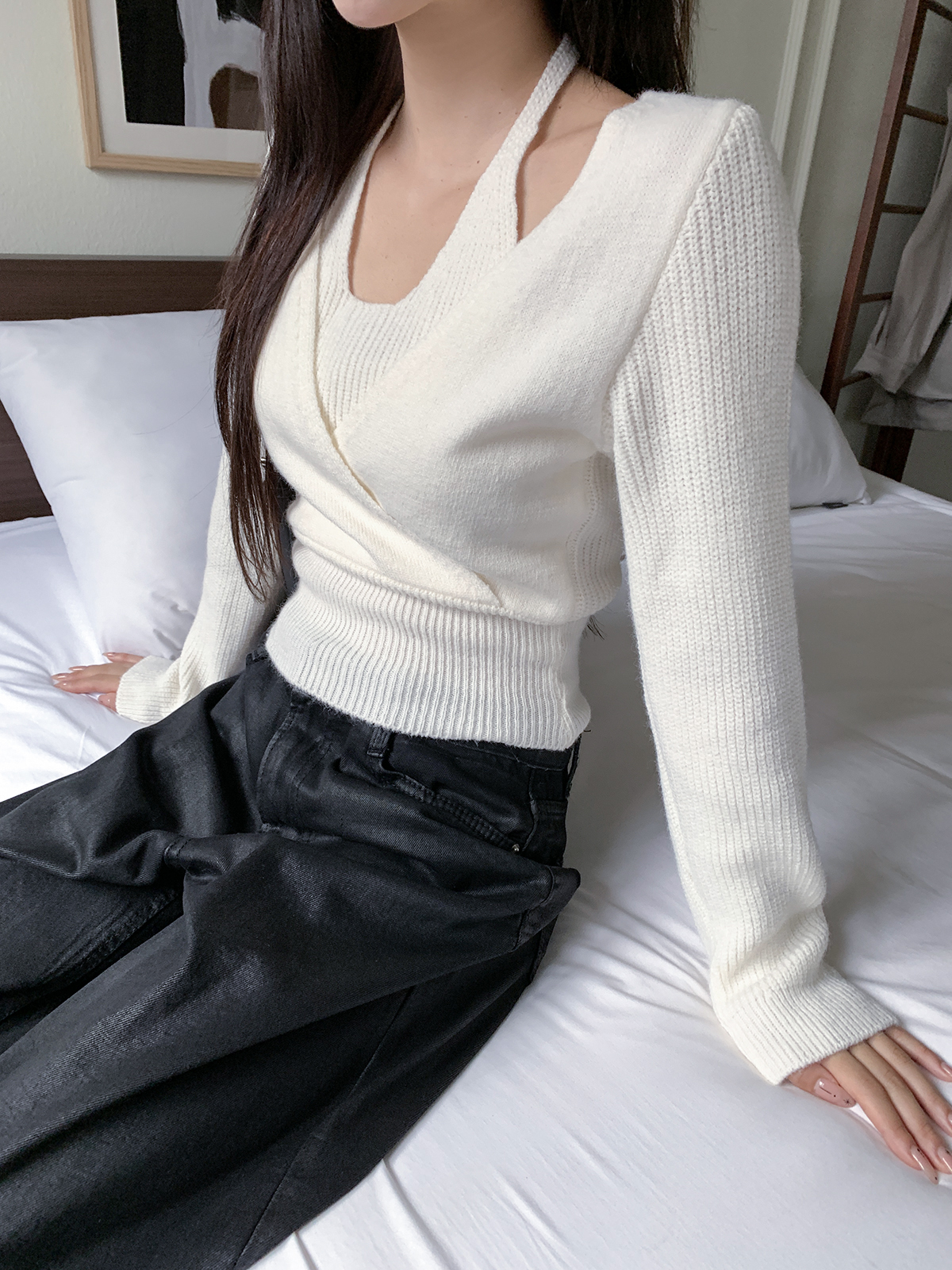 크롭 기장감의 아방한 핏이 포인트인 홀터넥 니트