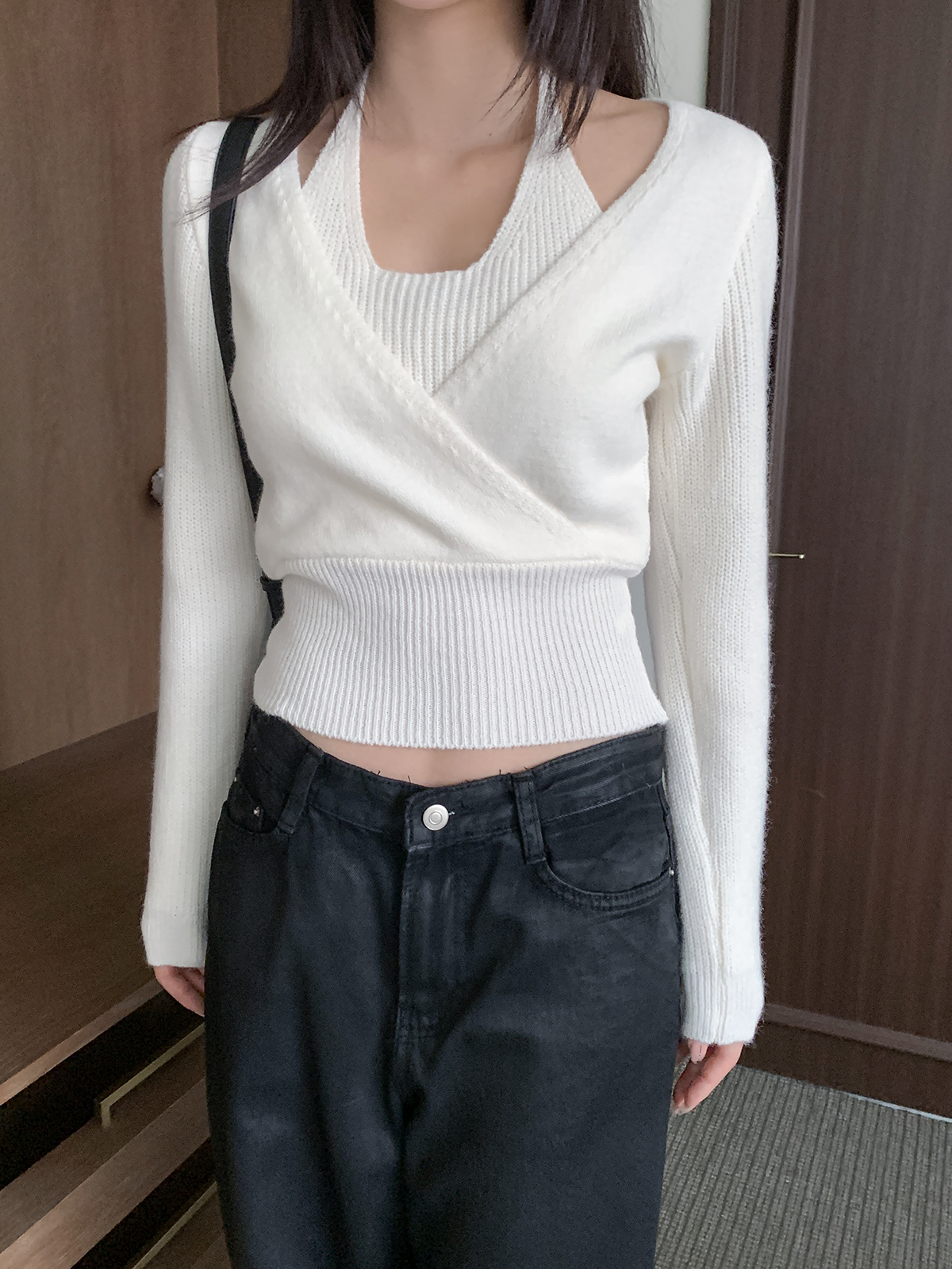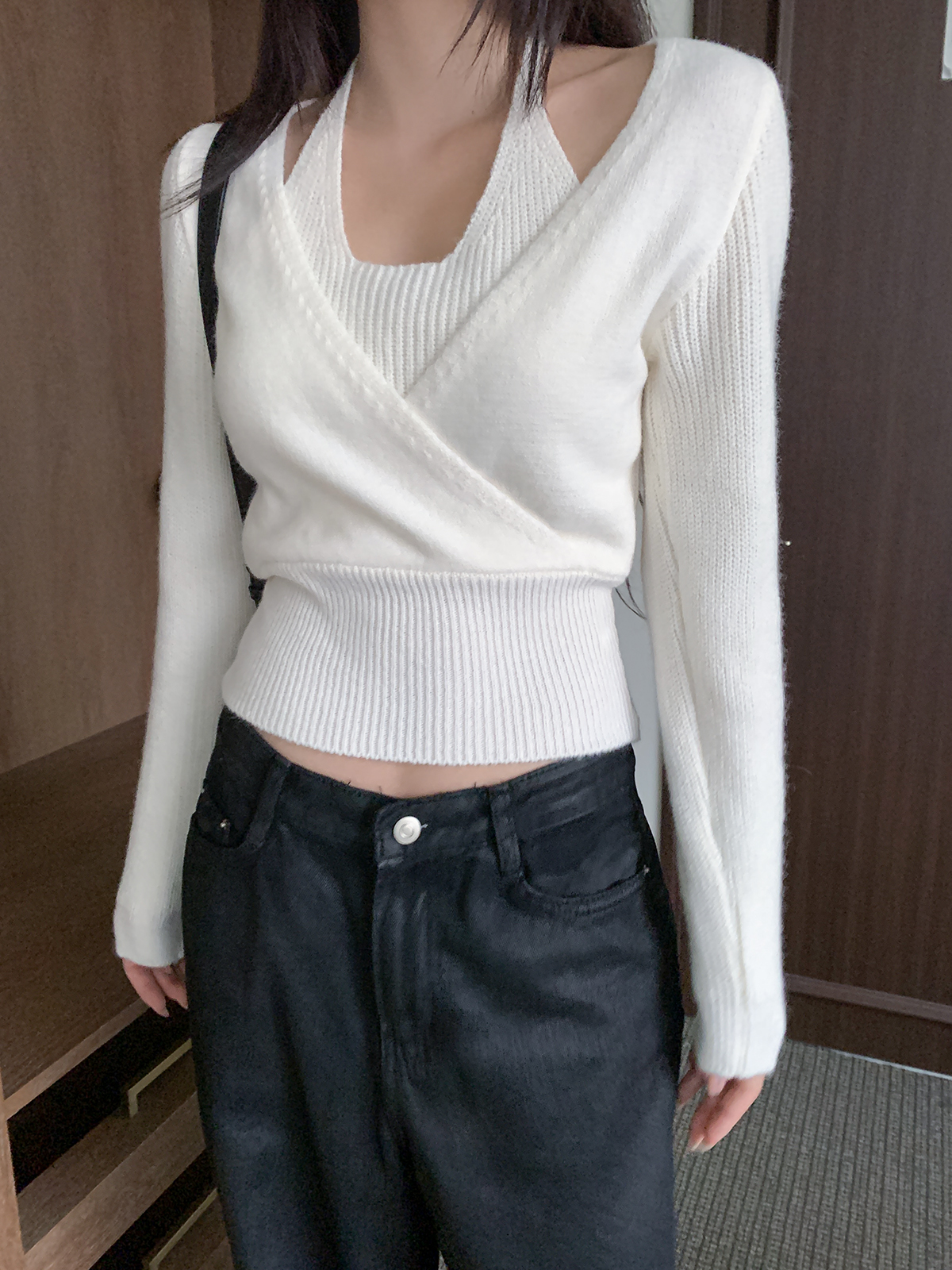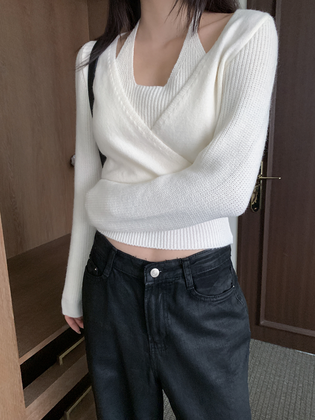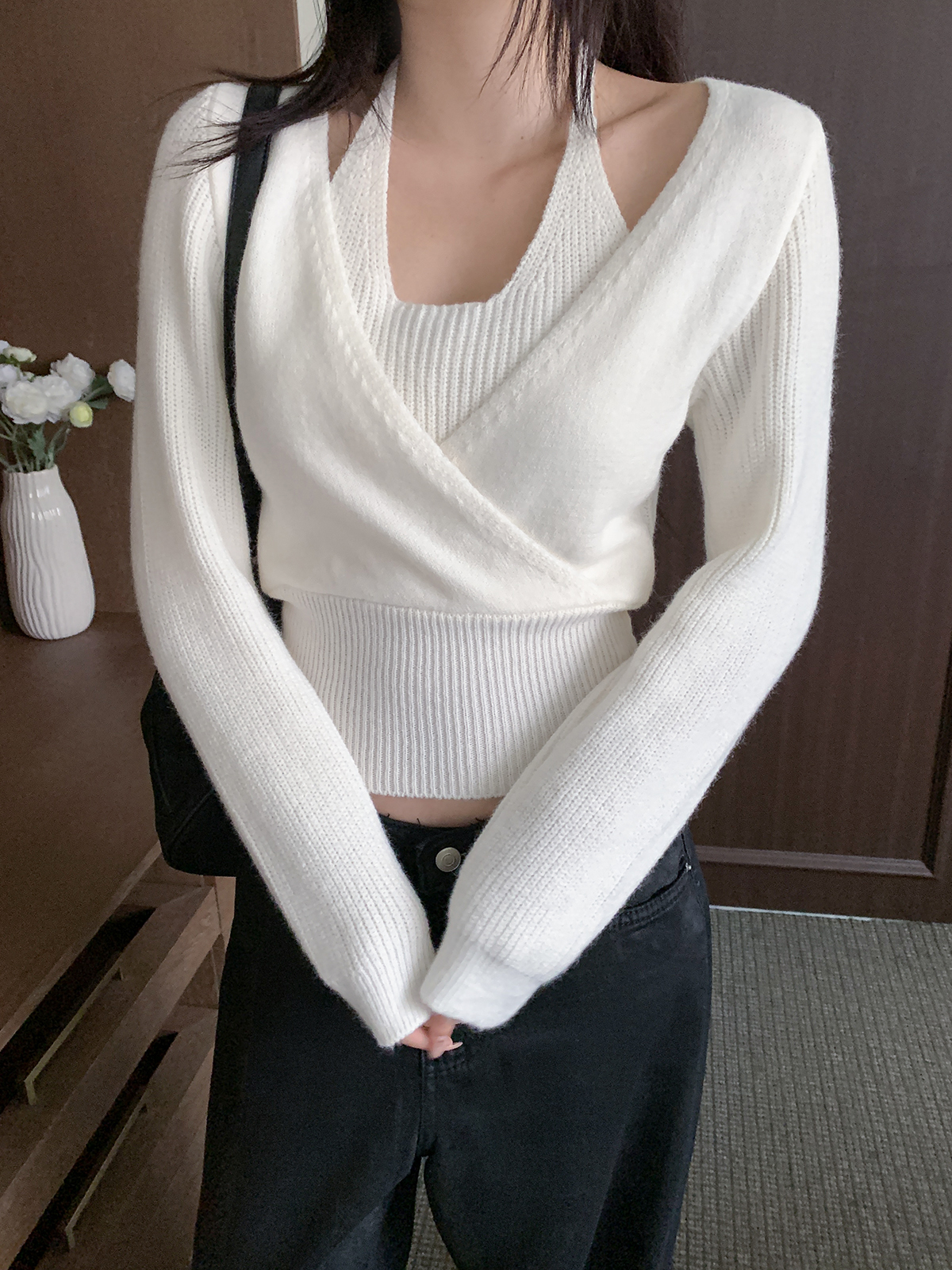 크롭 기장감의 아방한 핏이 포인트인 홀터넥 니트