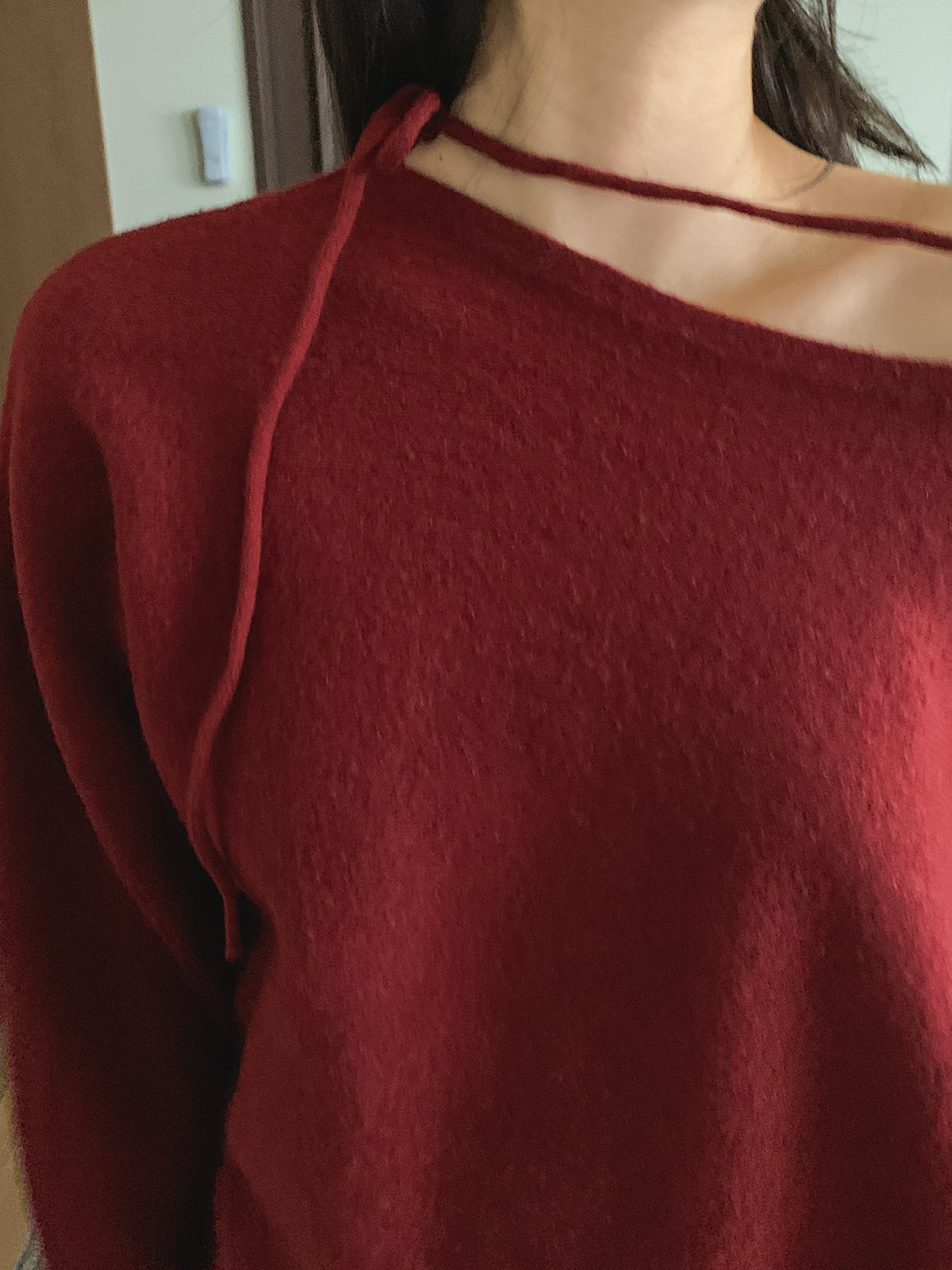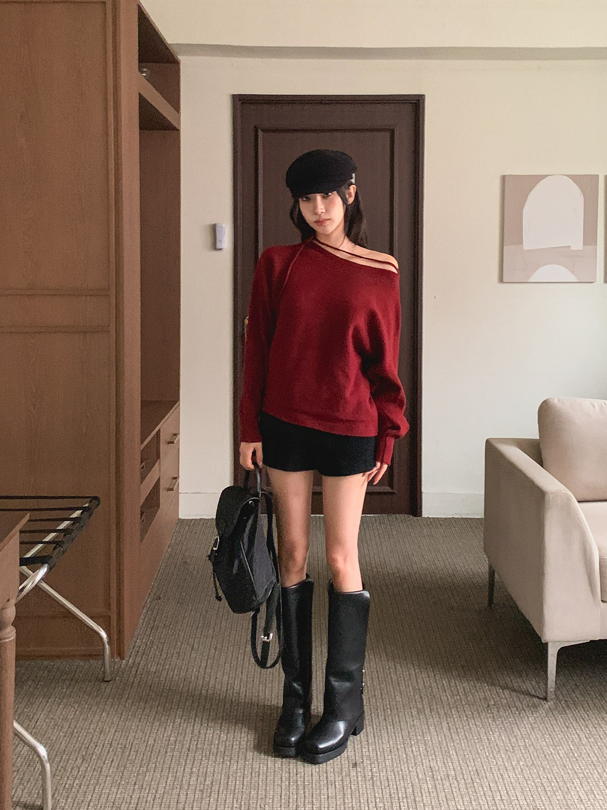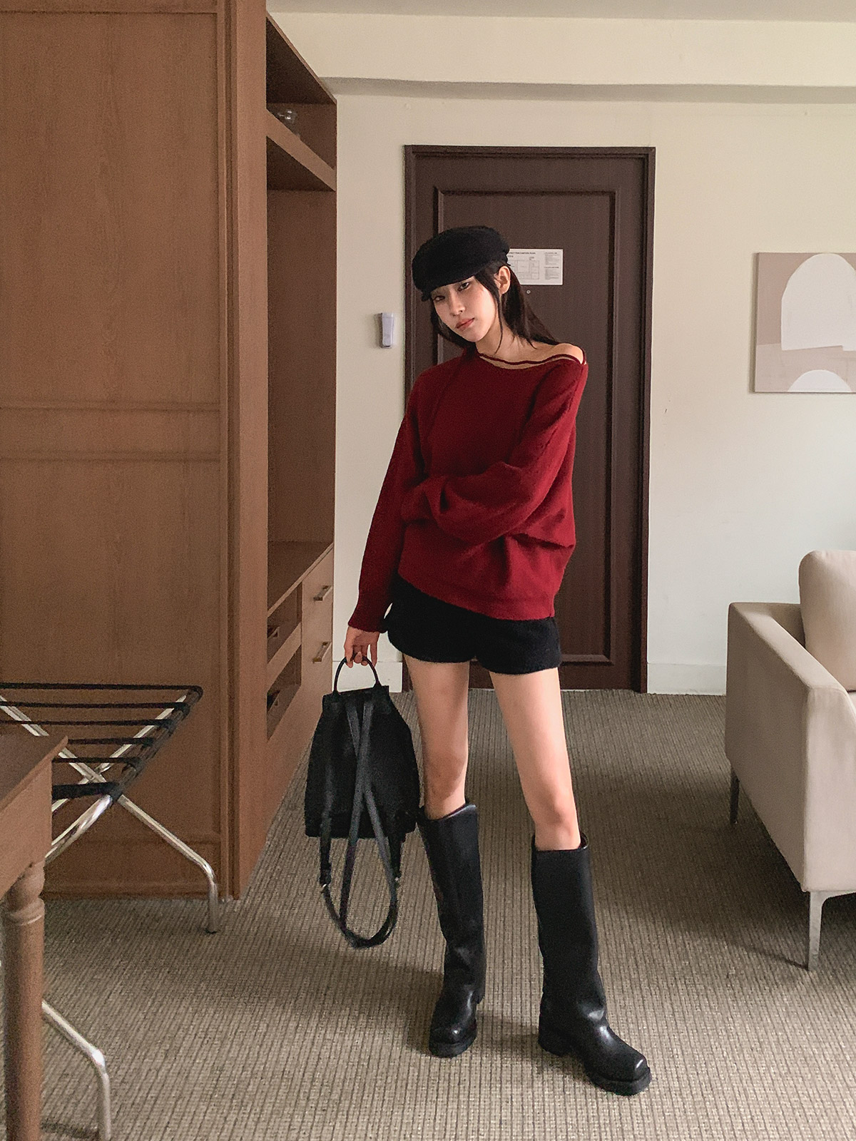 부드럽고 포근한 소재의 보트넥 초커 니트