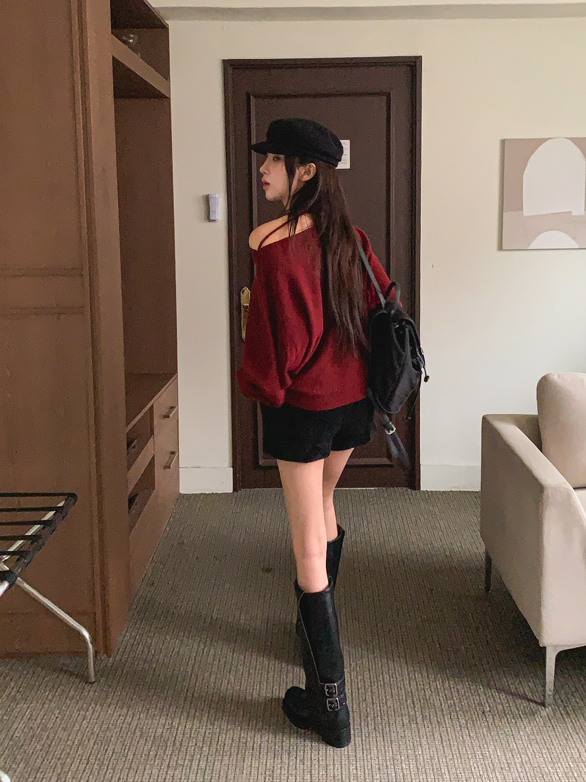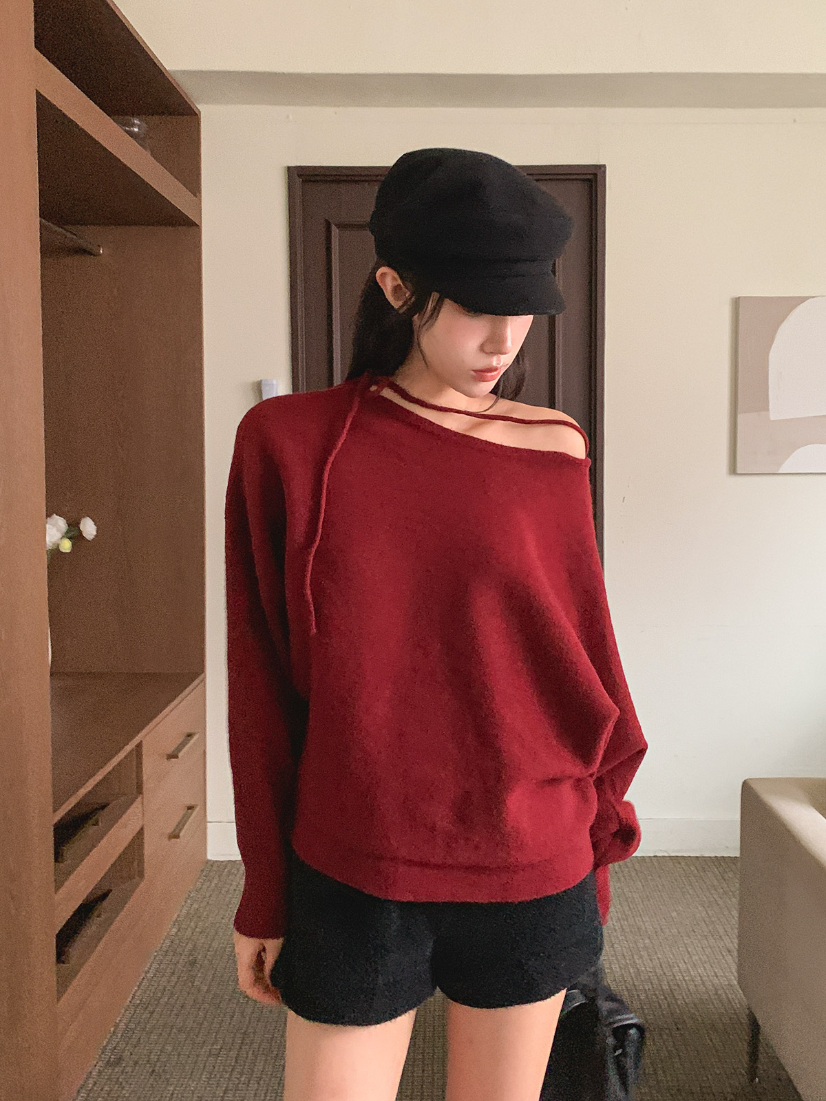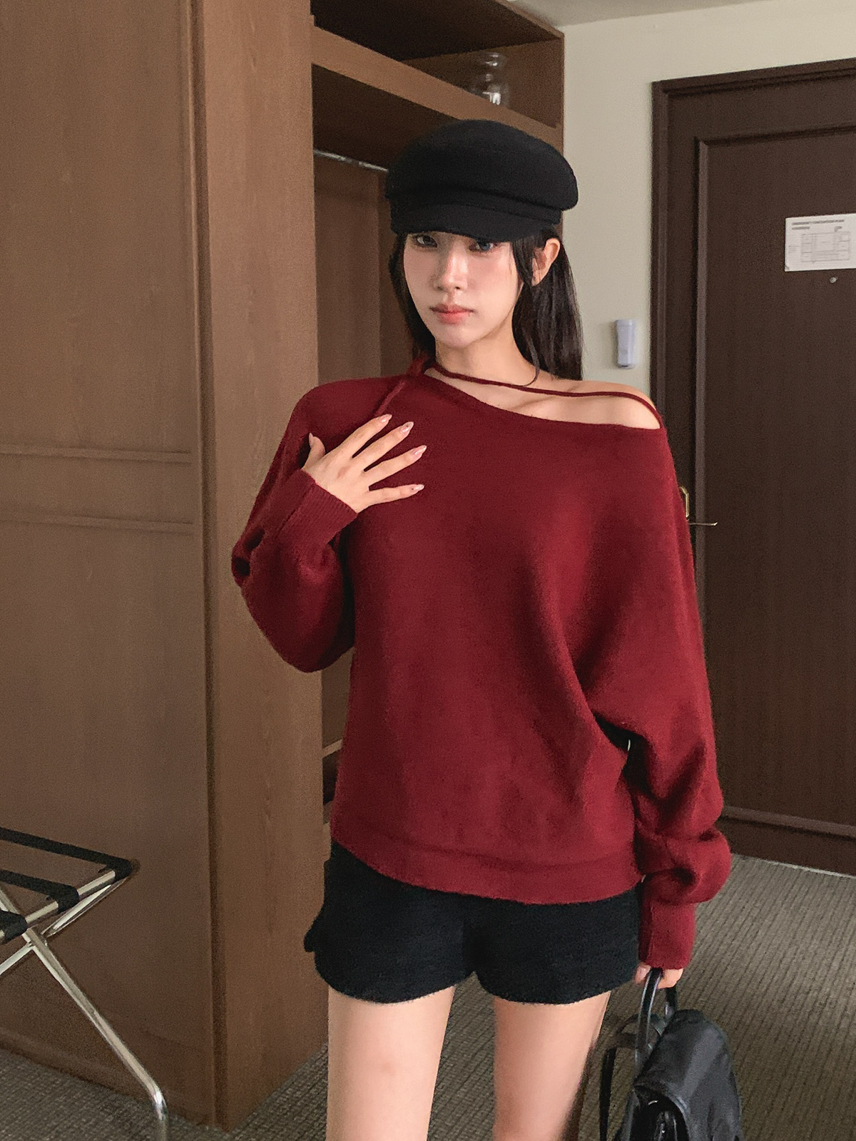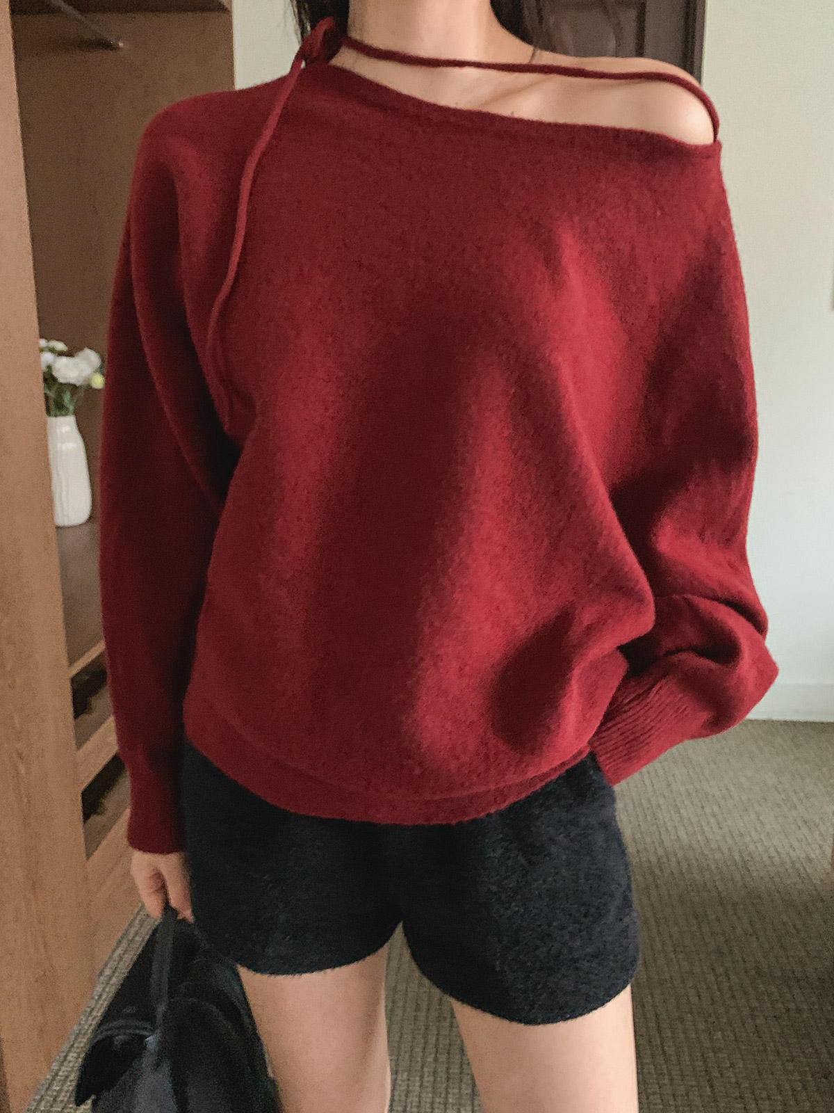 부드럽고 포근한 소재의 보트넥 초커 니트