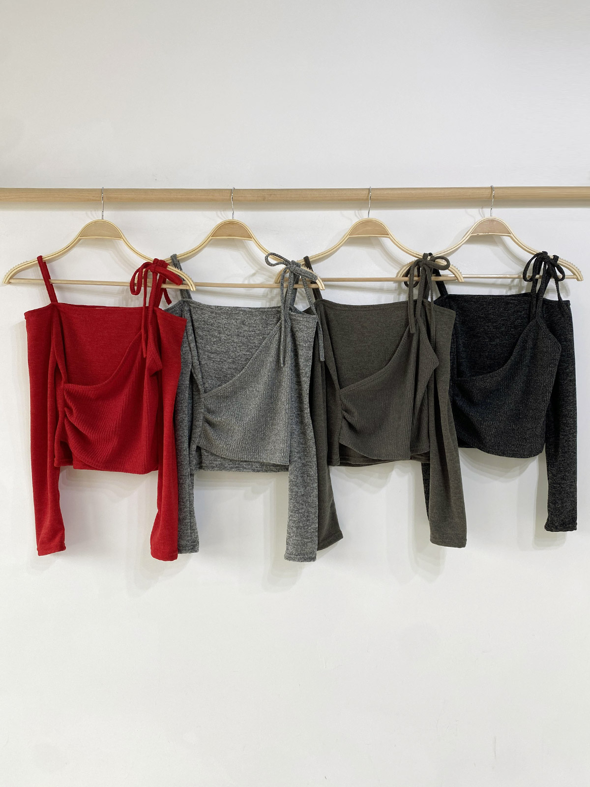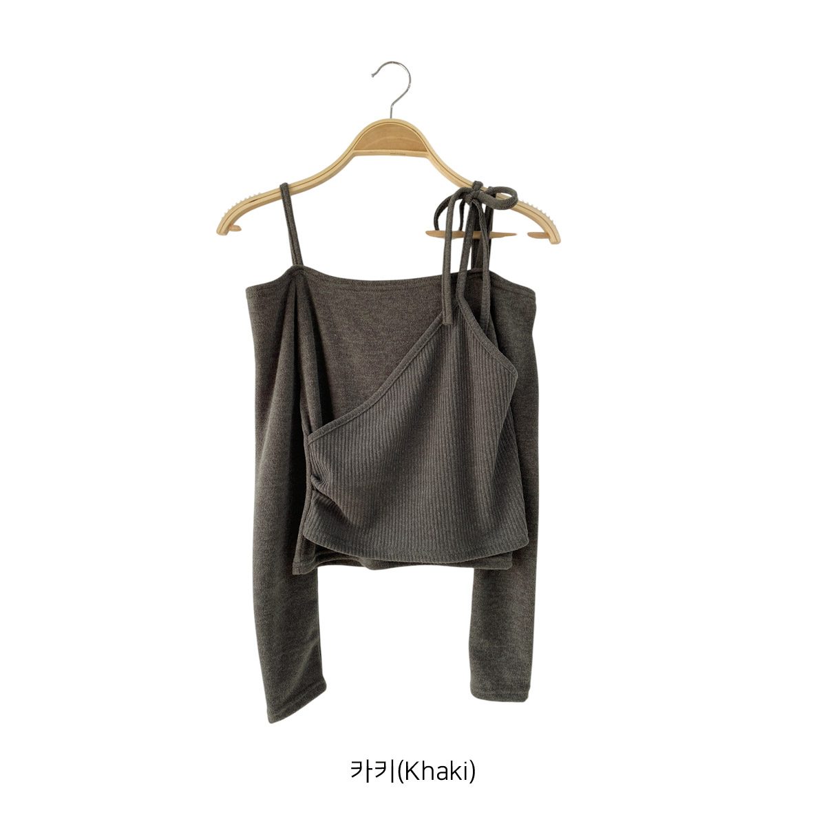 랩 디자인이 돋보이는 긴팔 레이어드 니트