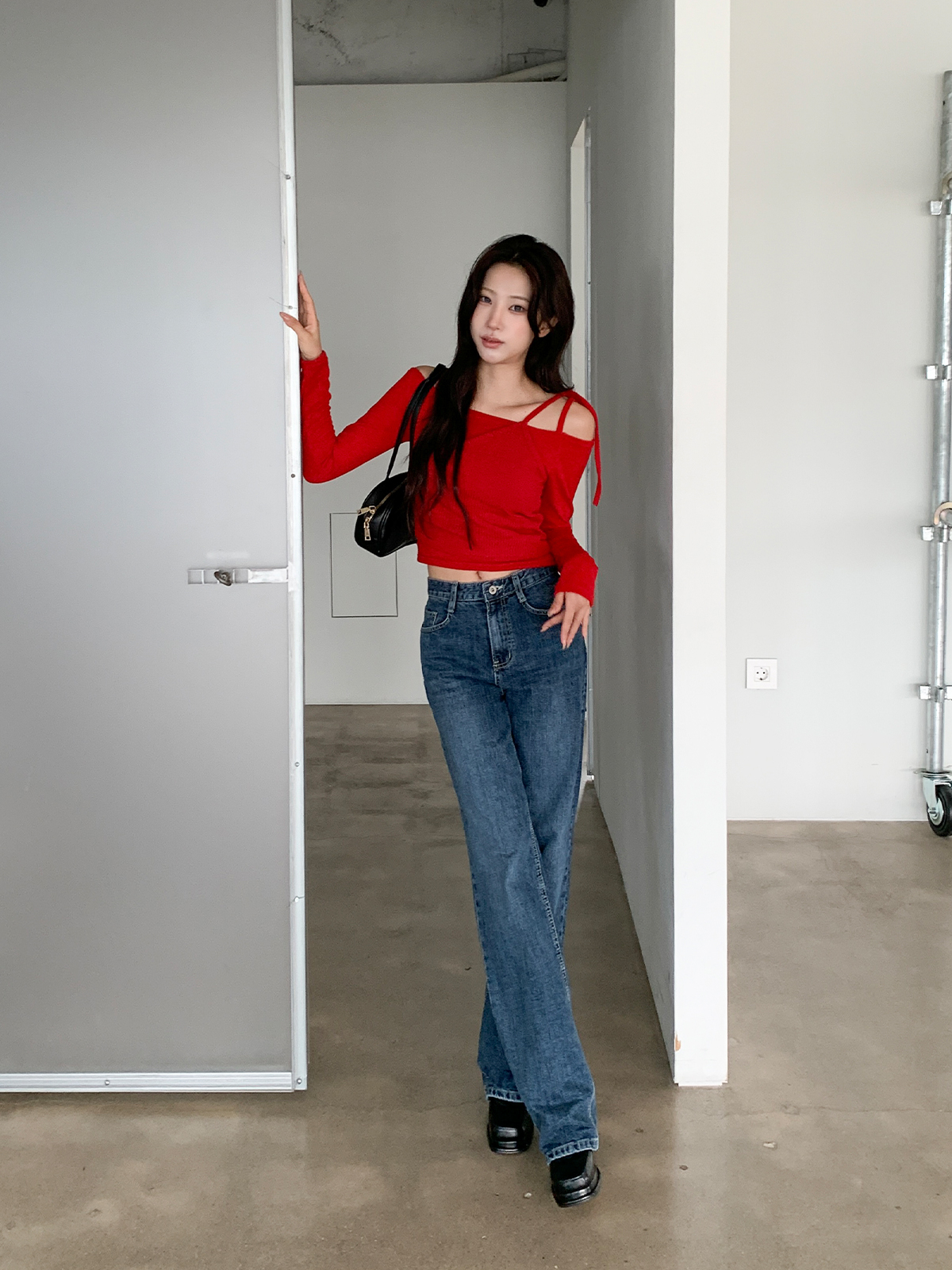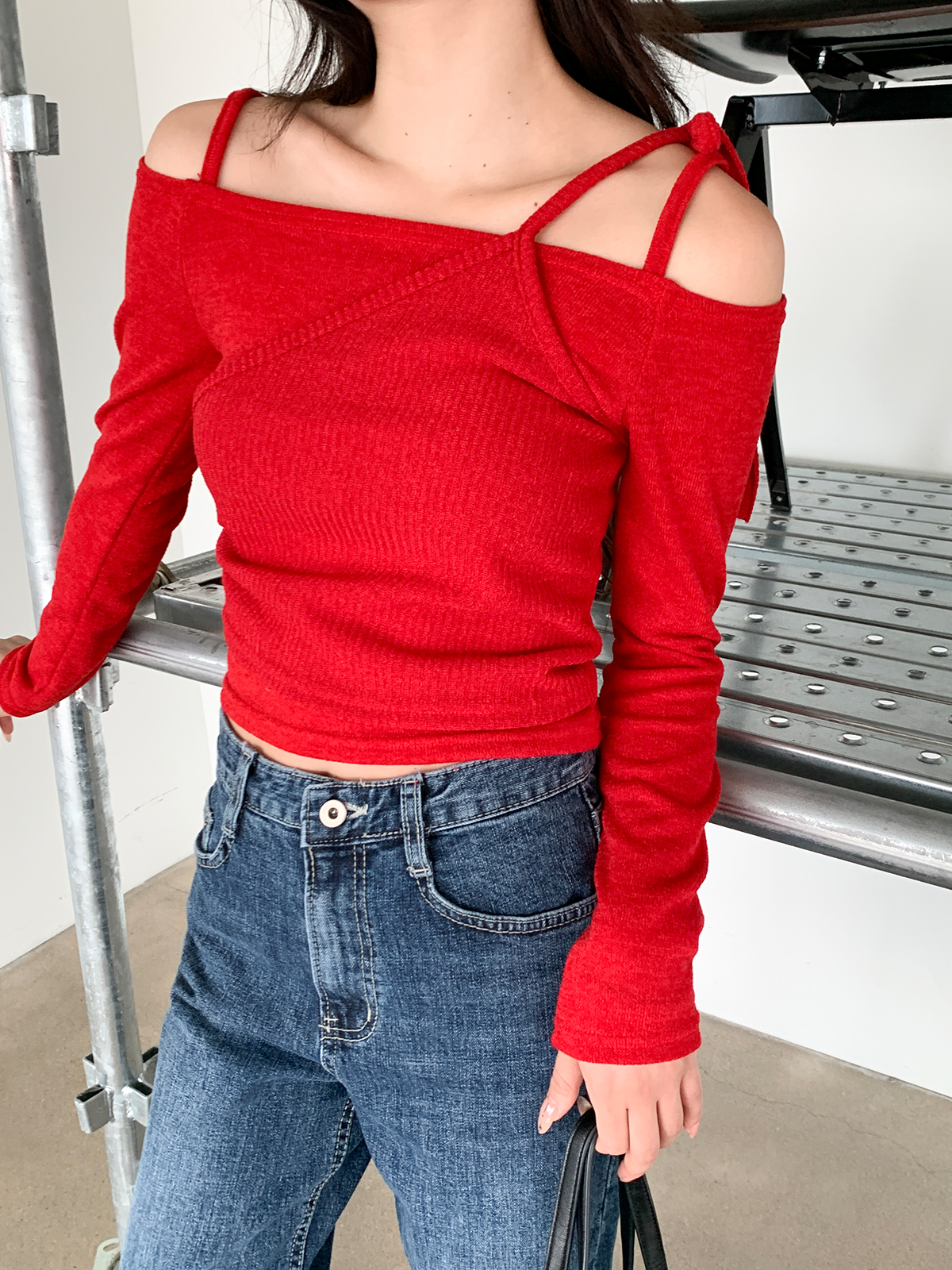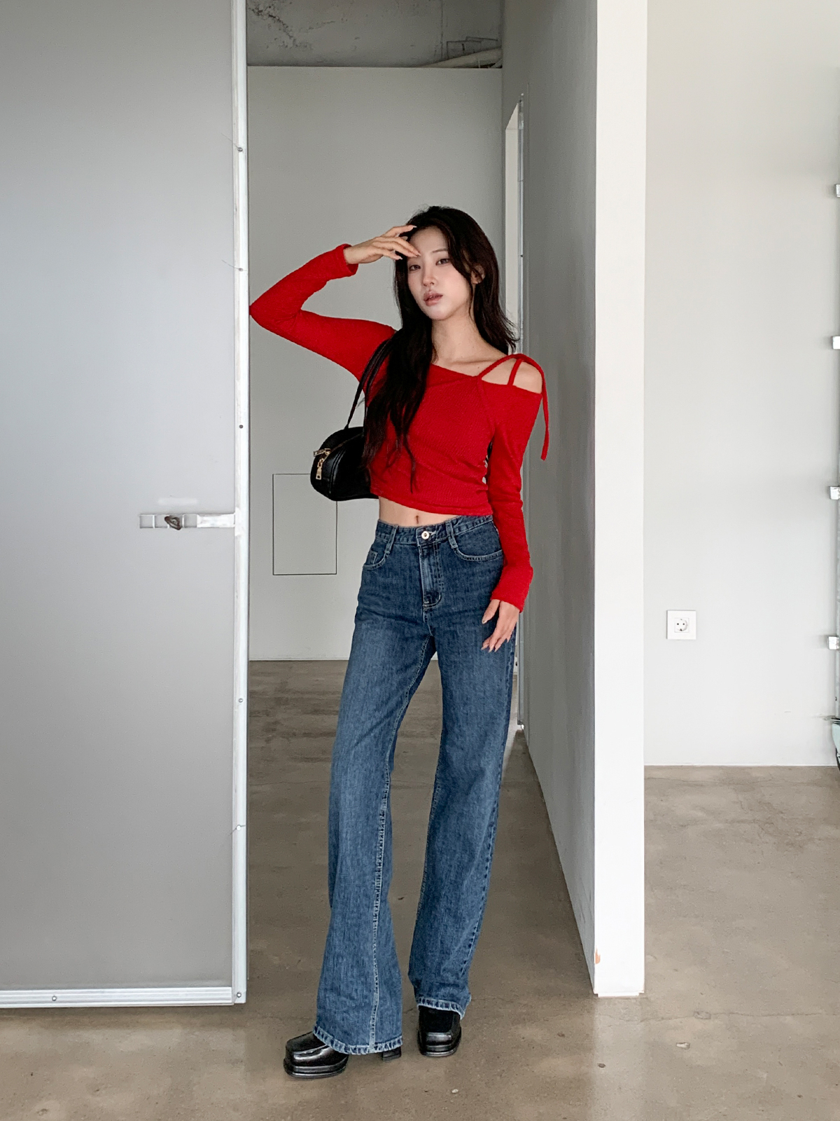 크롭 기장으로 다양한 하의와 매치하여