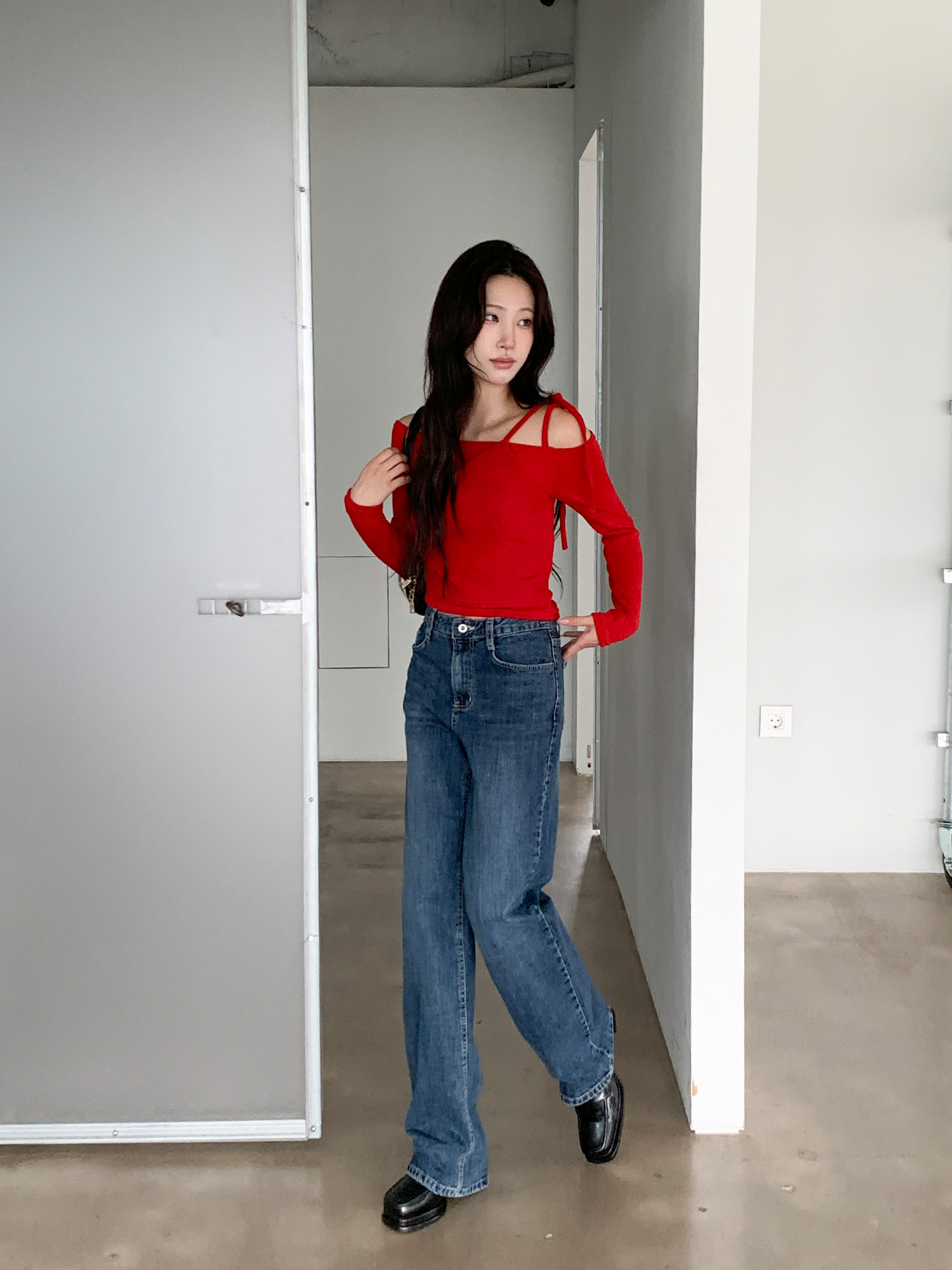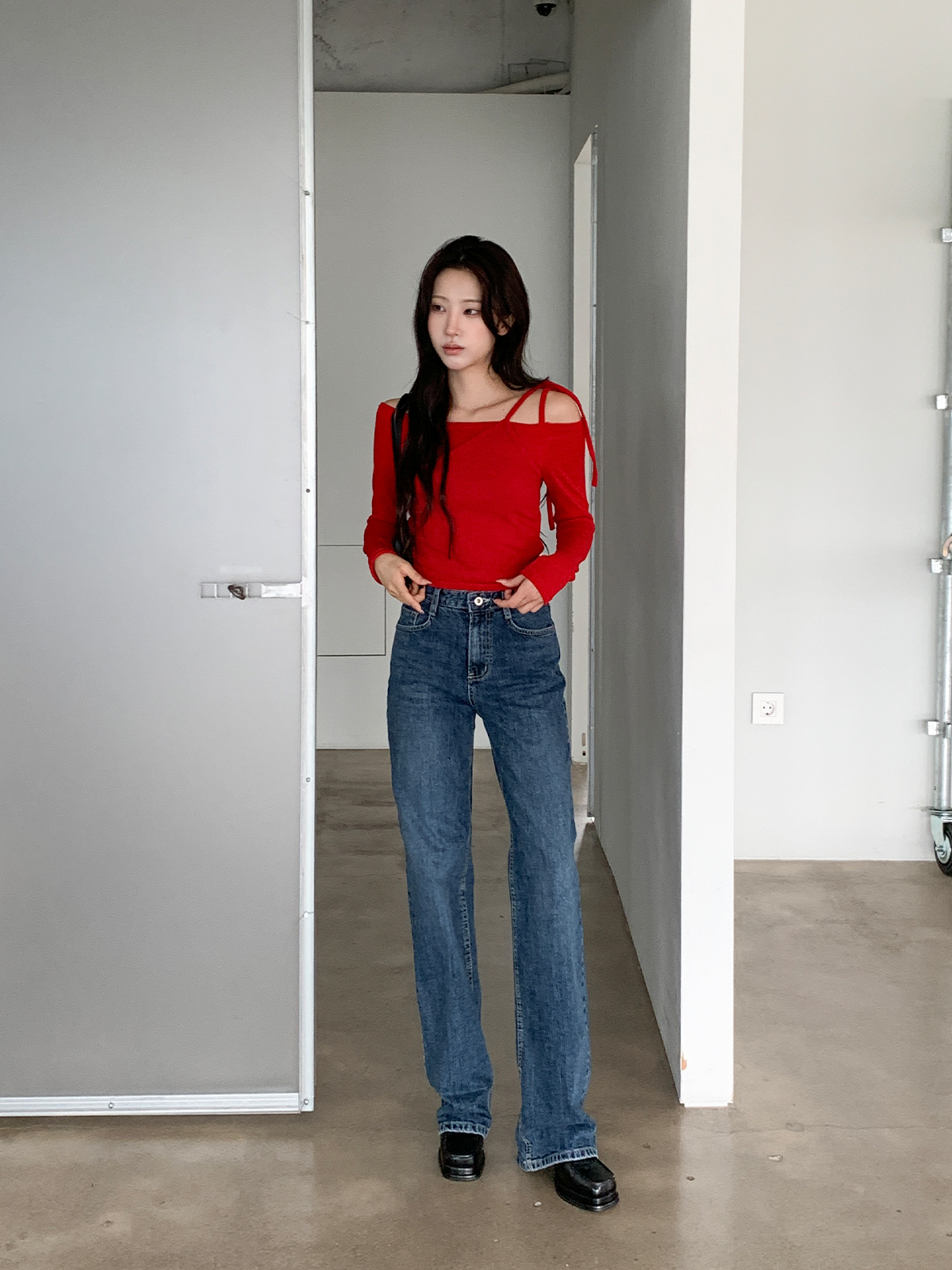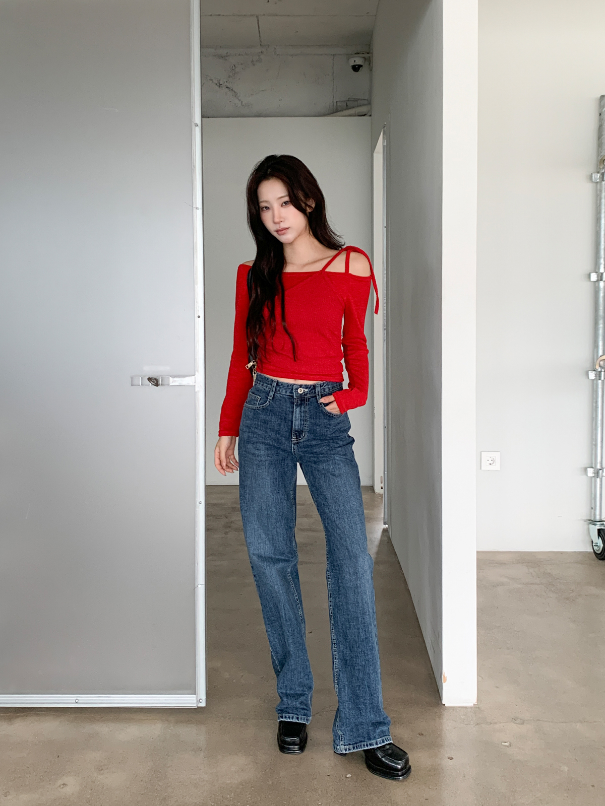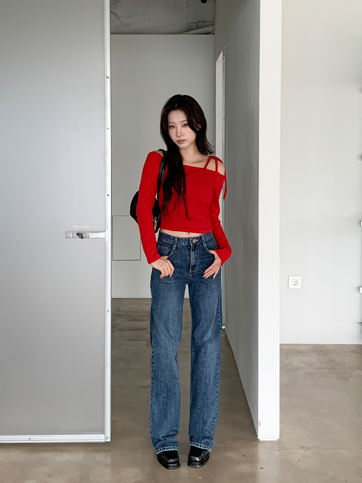 크롭 기장으로 다양한 하의와 매치하여