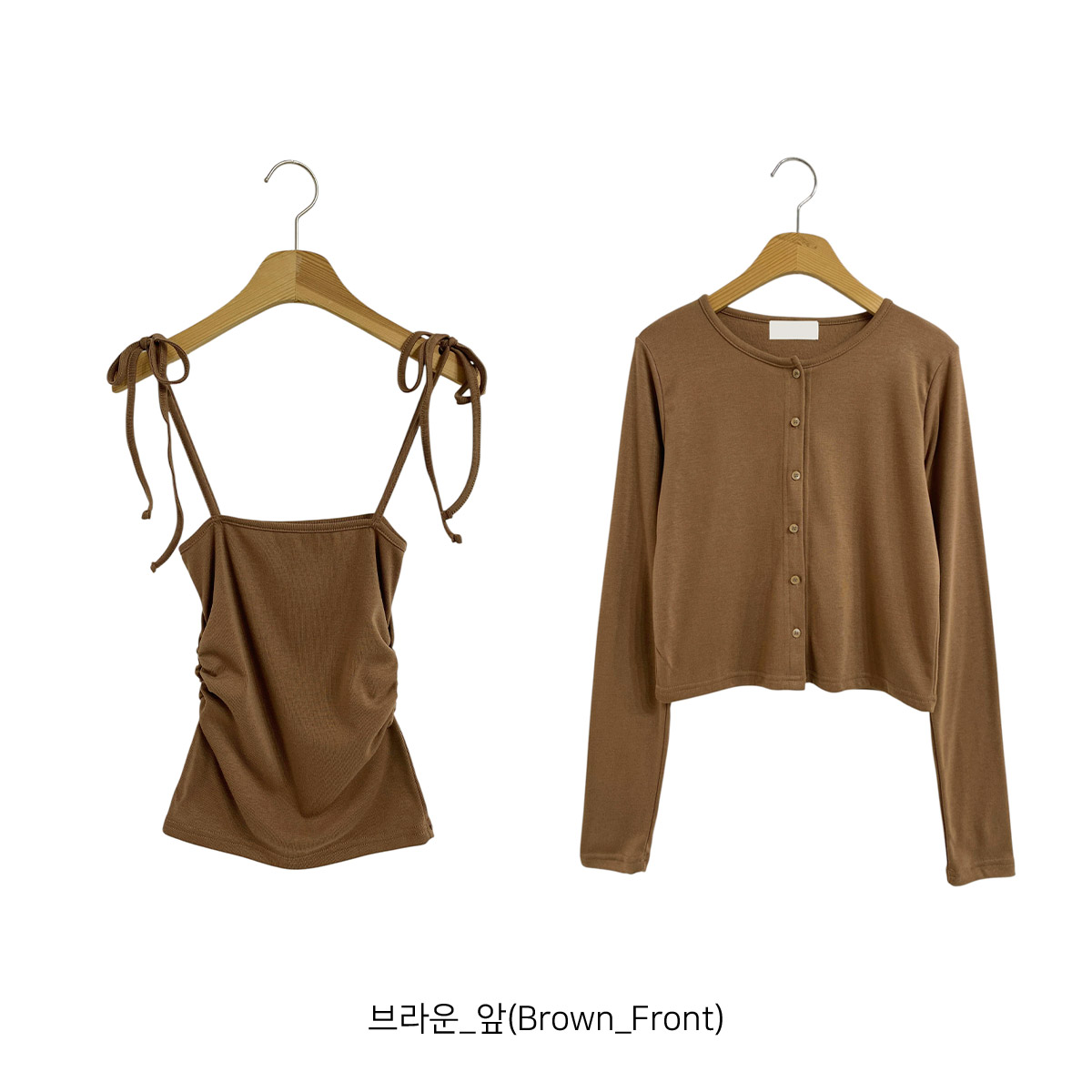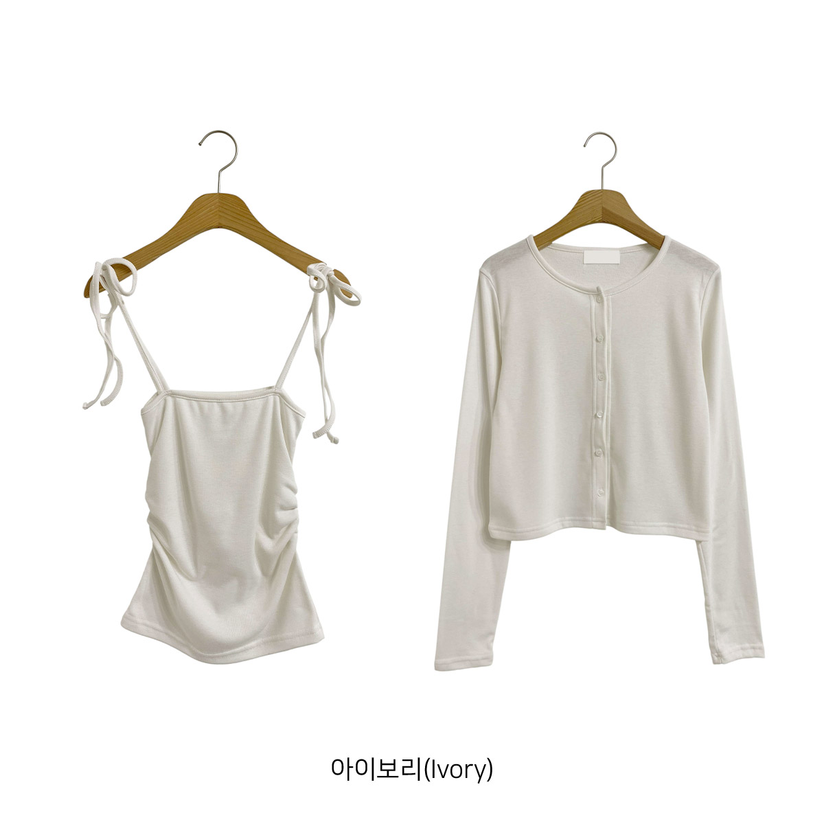 페미닌함을 돋보이는 여리여리한 무드에 셔링 나시 가디건 세트로