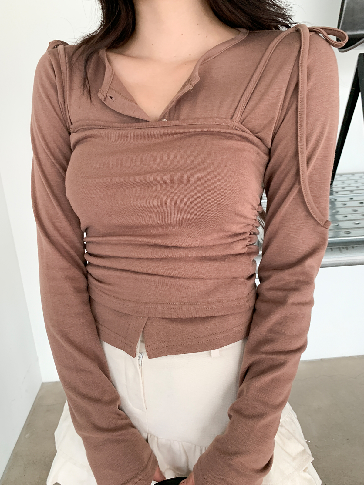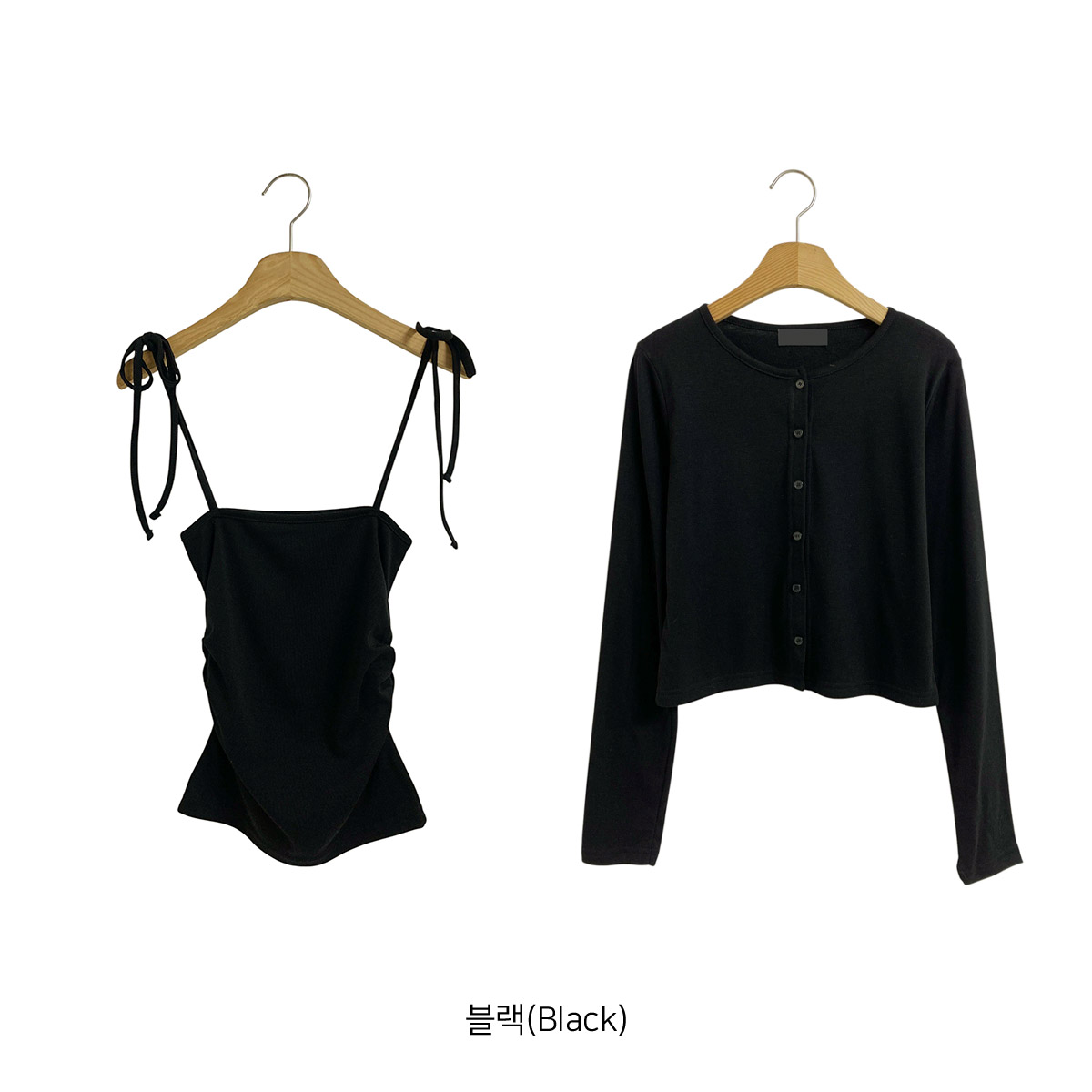 셔링탑을 안에 입어서 나시 가디건 세트로도 입을 수 있어