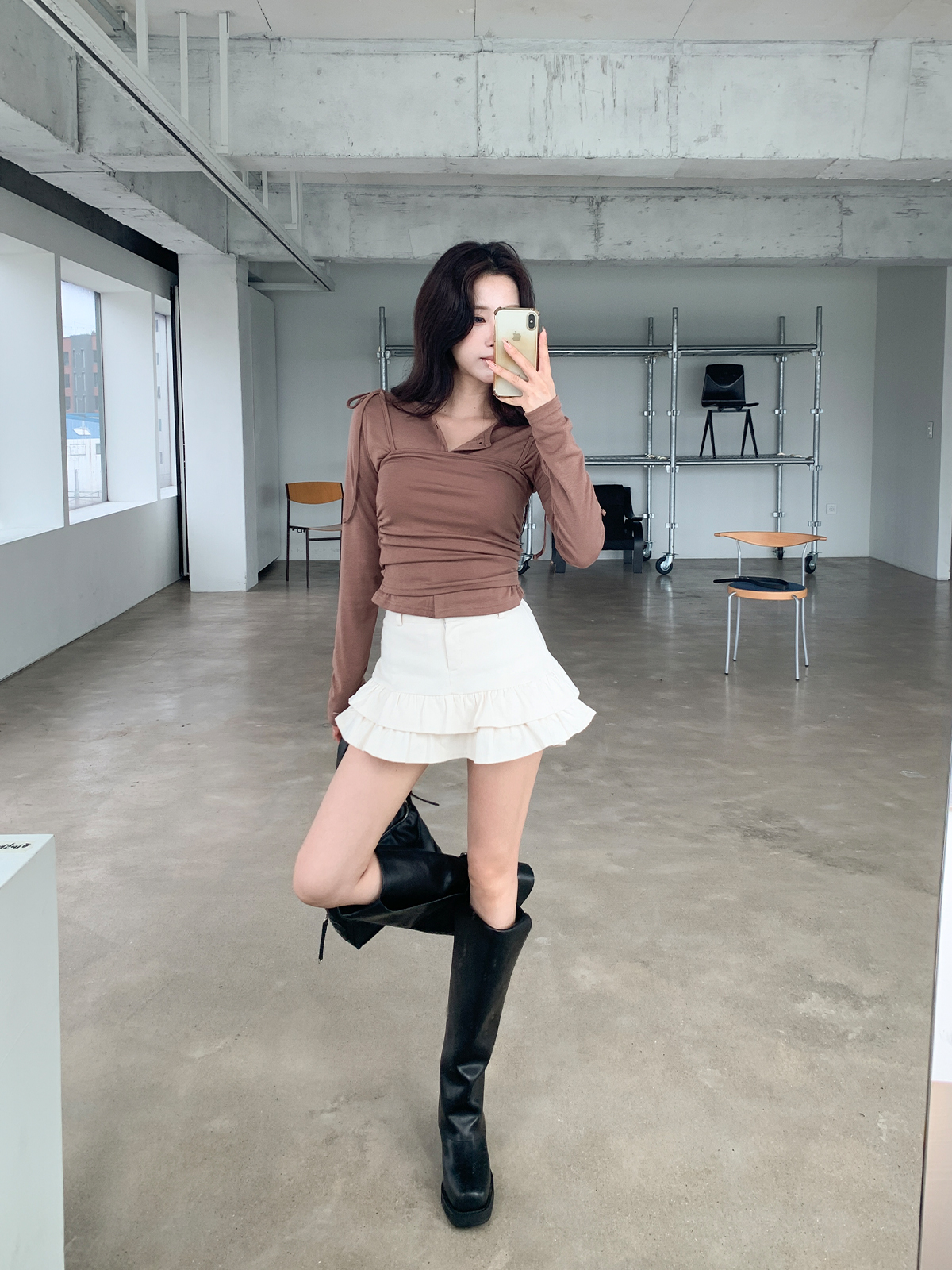 셔링뷔스티에 탑을 가디건 위에 입어 연출할 수 있고