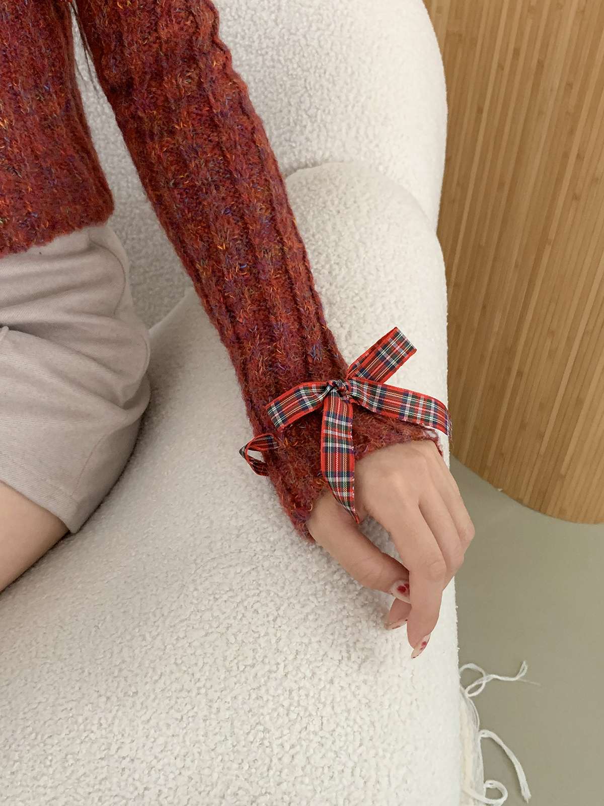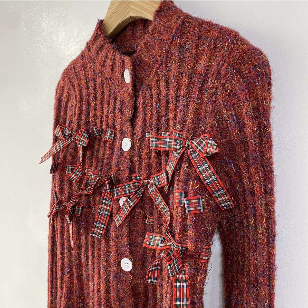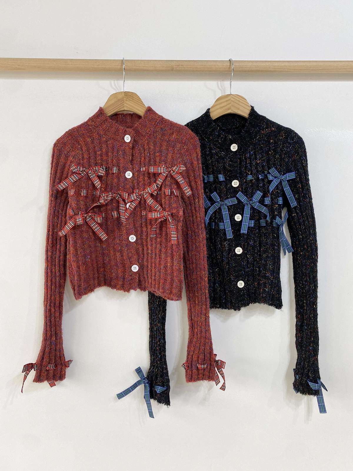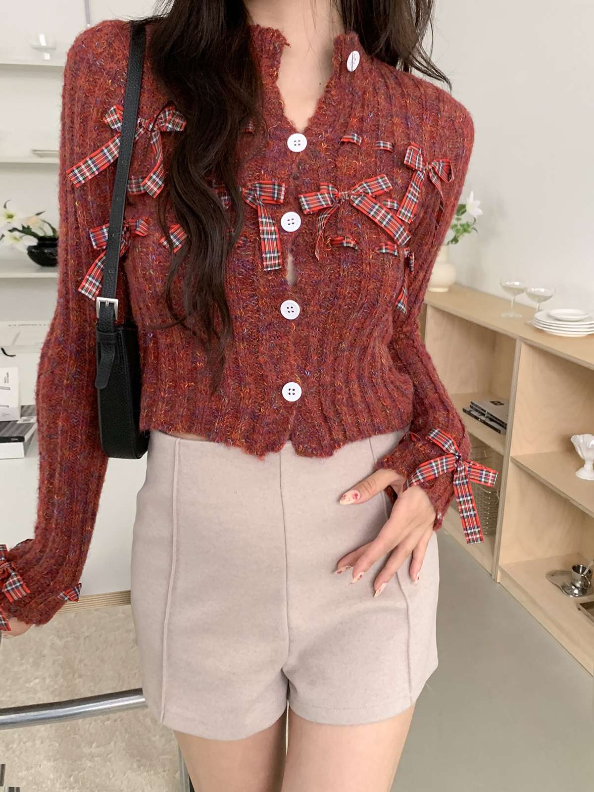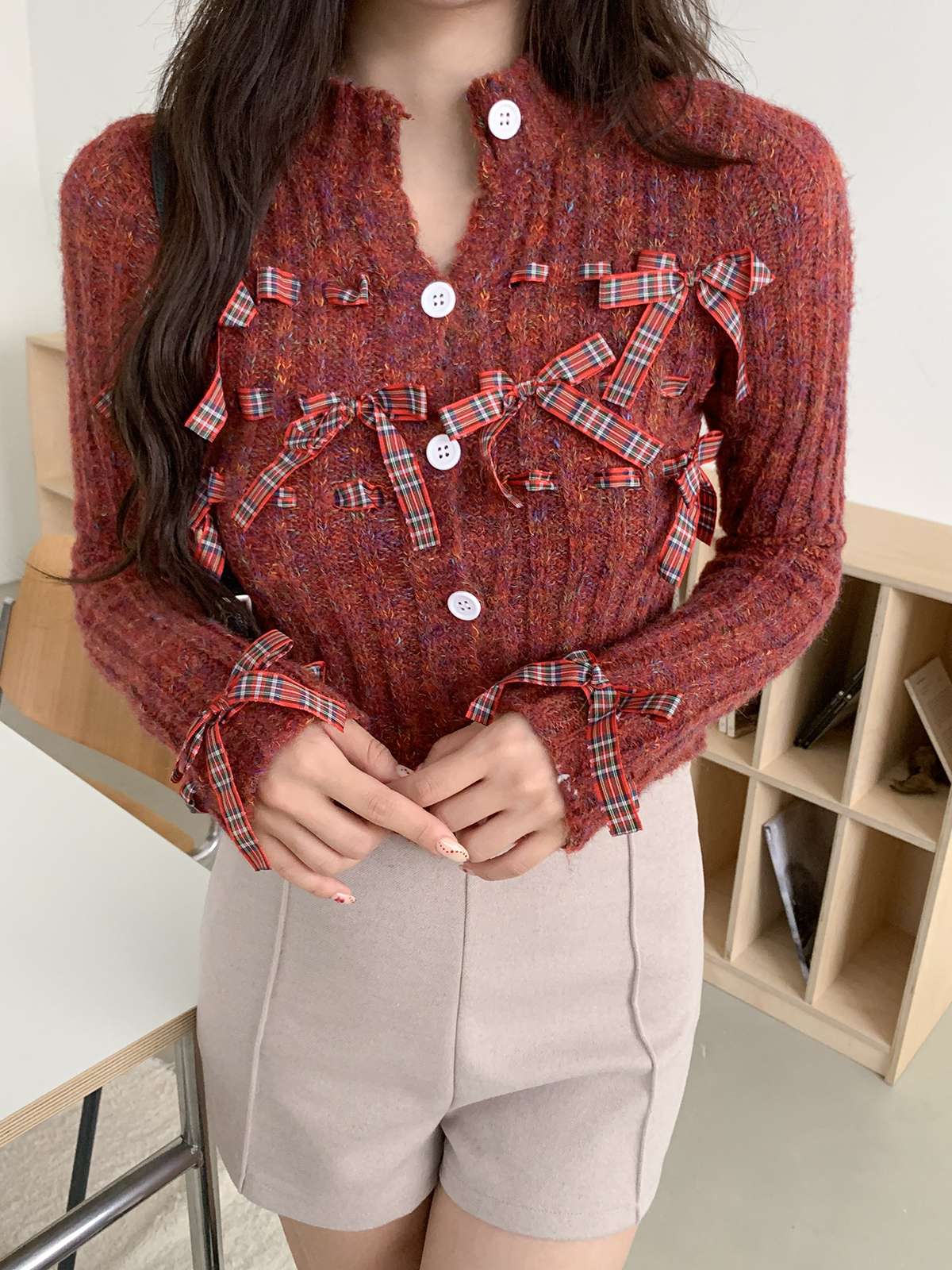 슬림한 핏감의 리본 디테일이 포인트인 데일리 가디건