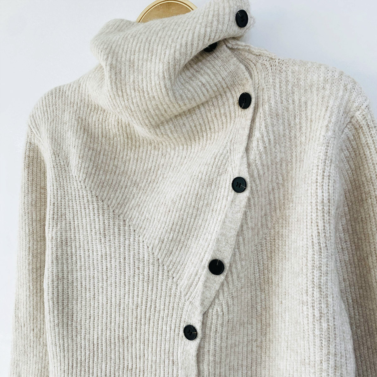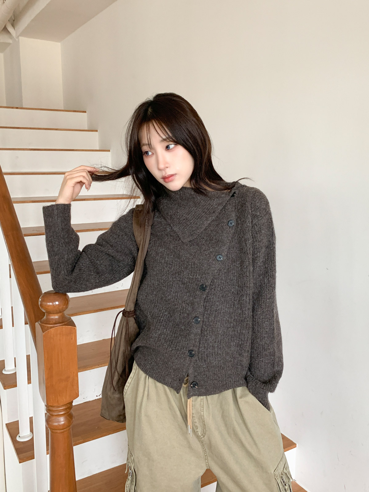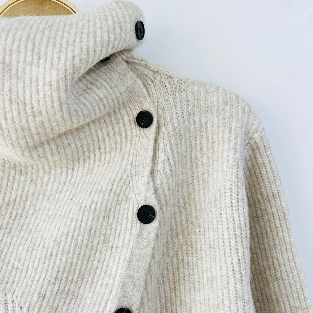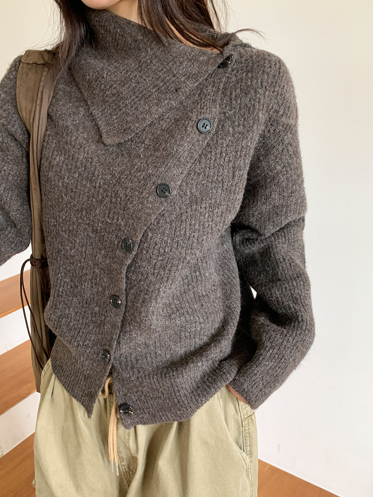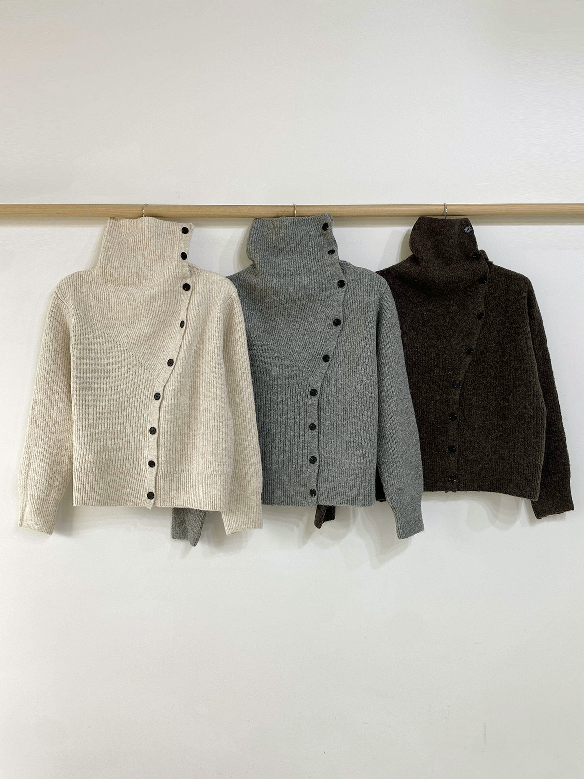 언발과 하이넥 연출이 가능한 울 니트 가디건