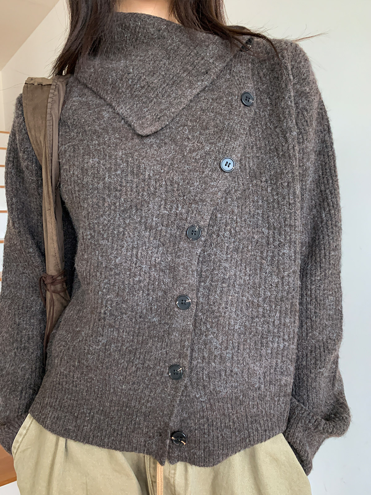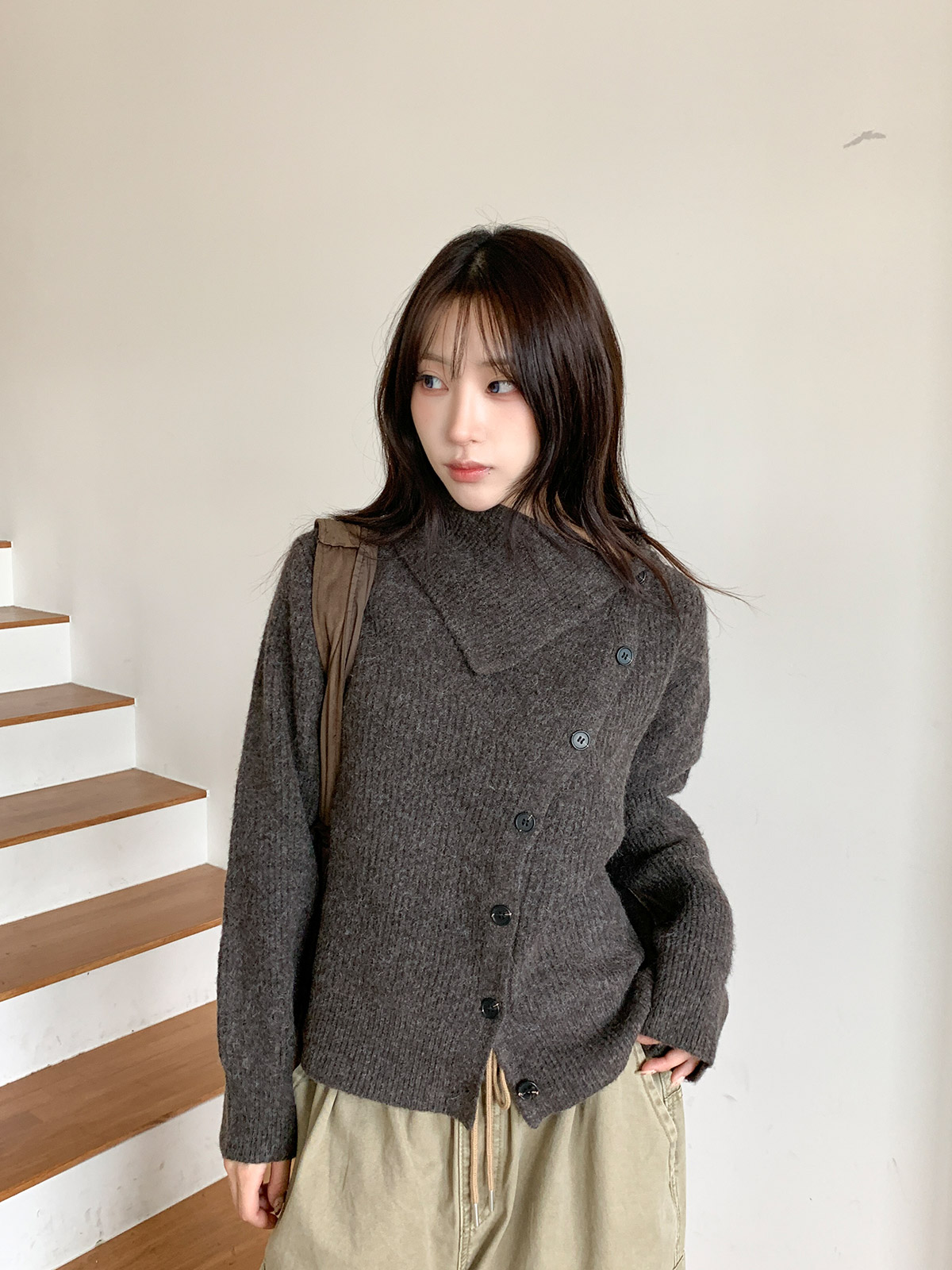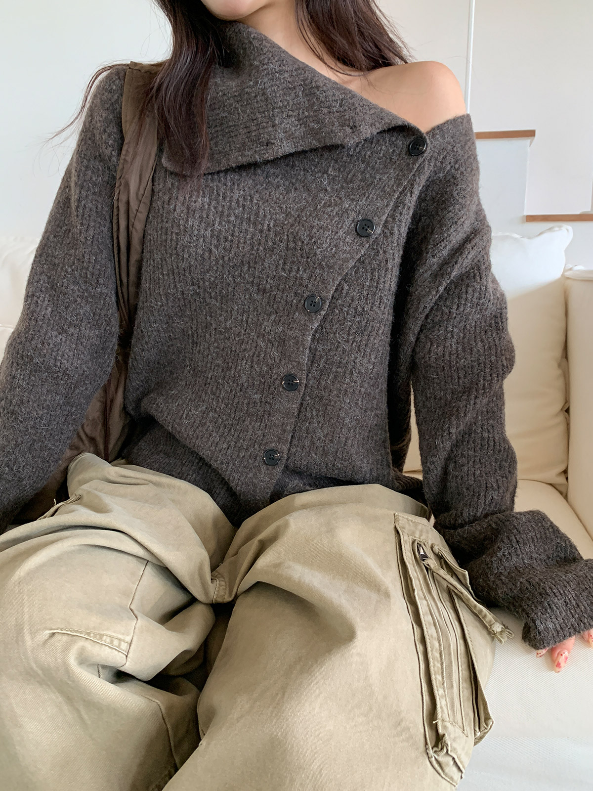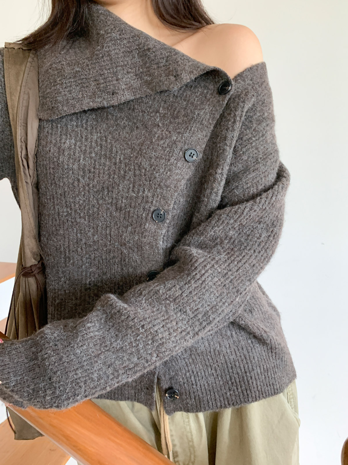 포인트 되는 코디로 딱인 언발 울 니트 가디건으로