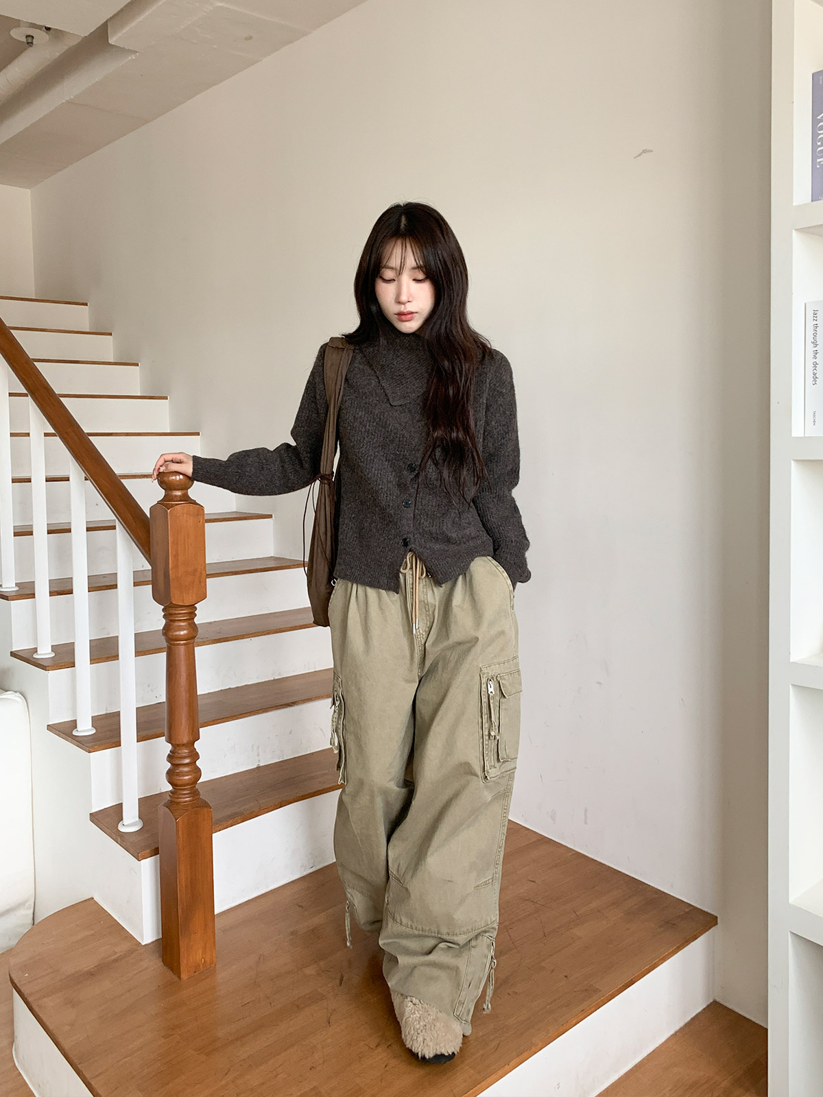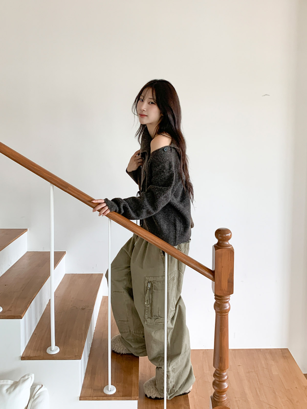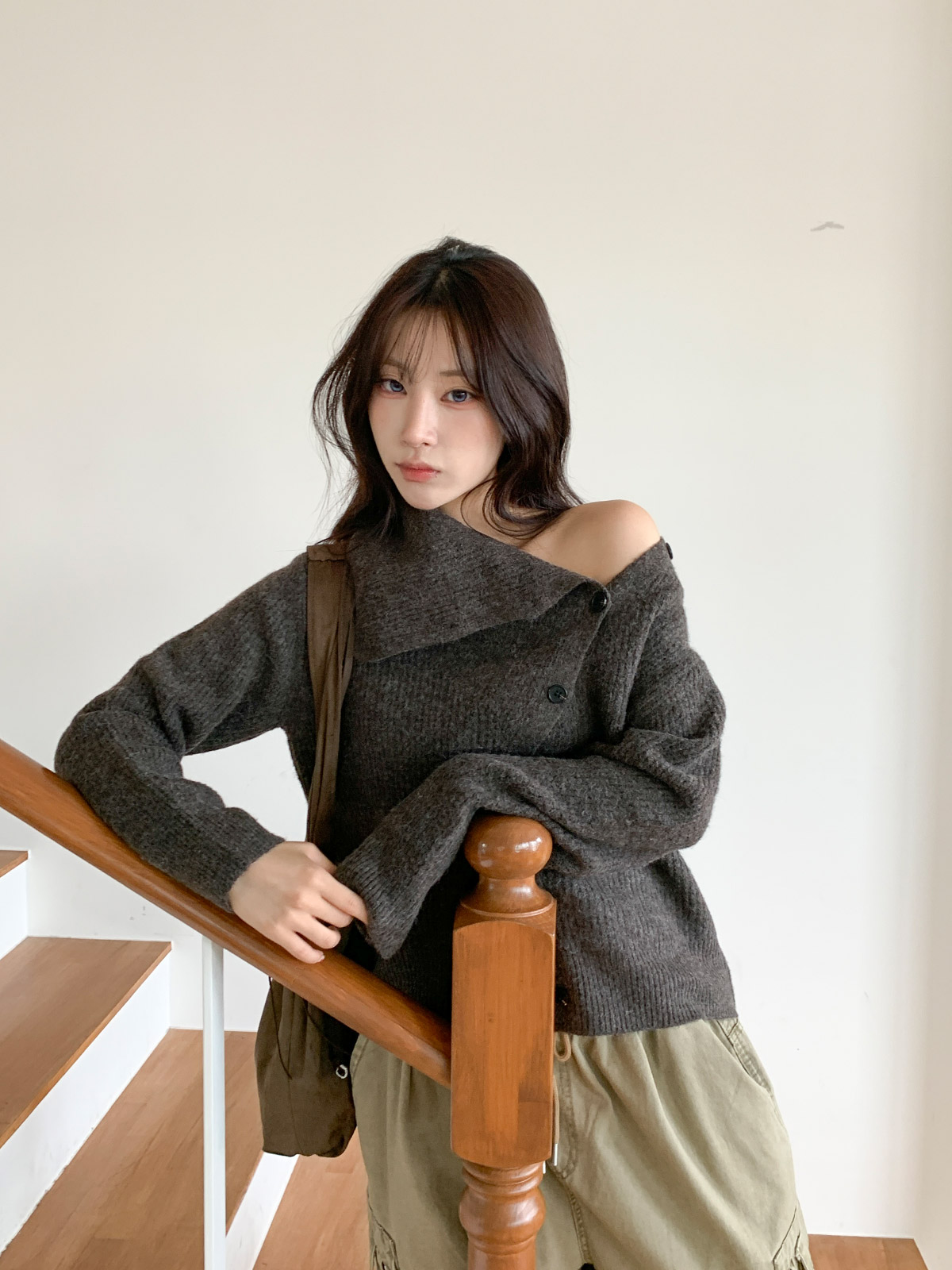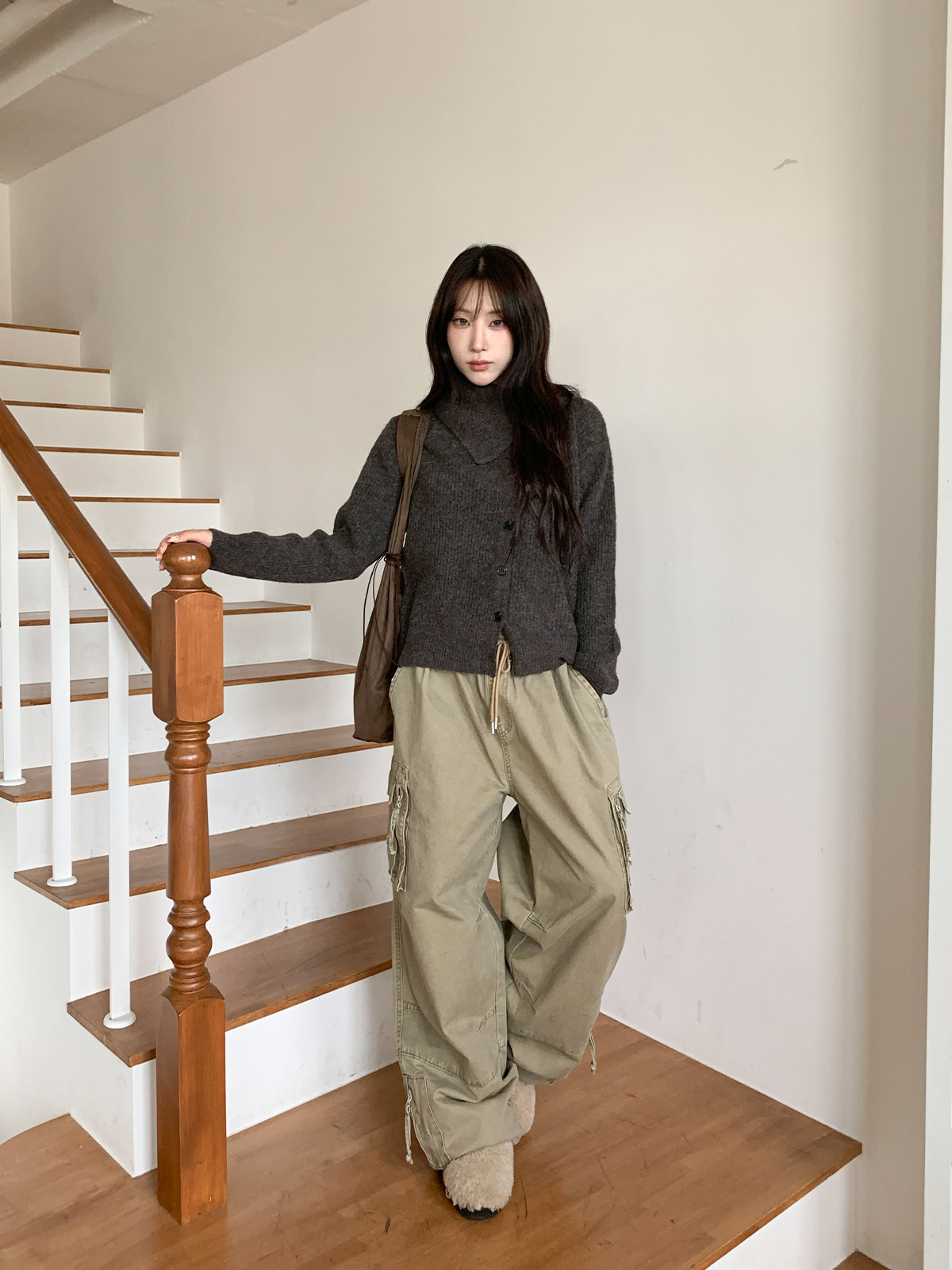 포인트 되는 코디로 딱인 언발 울 니트 가디건으로