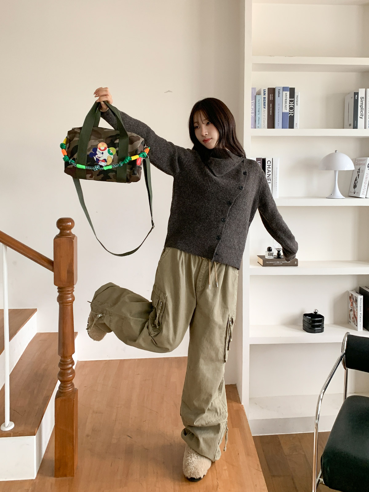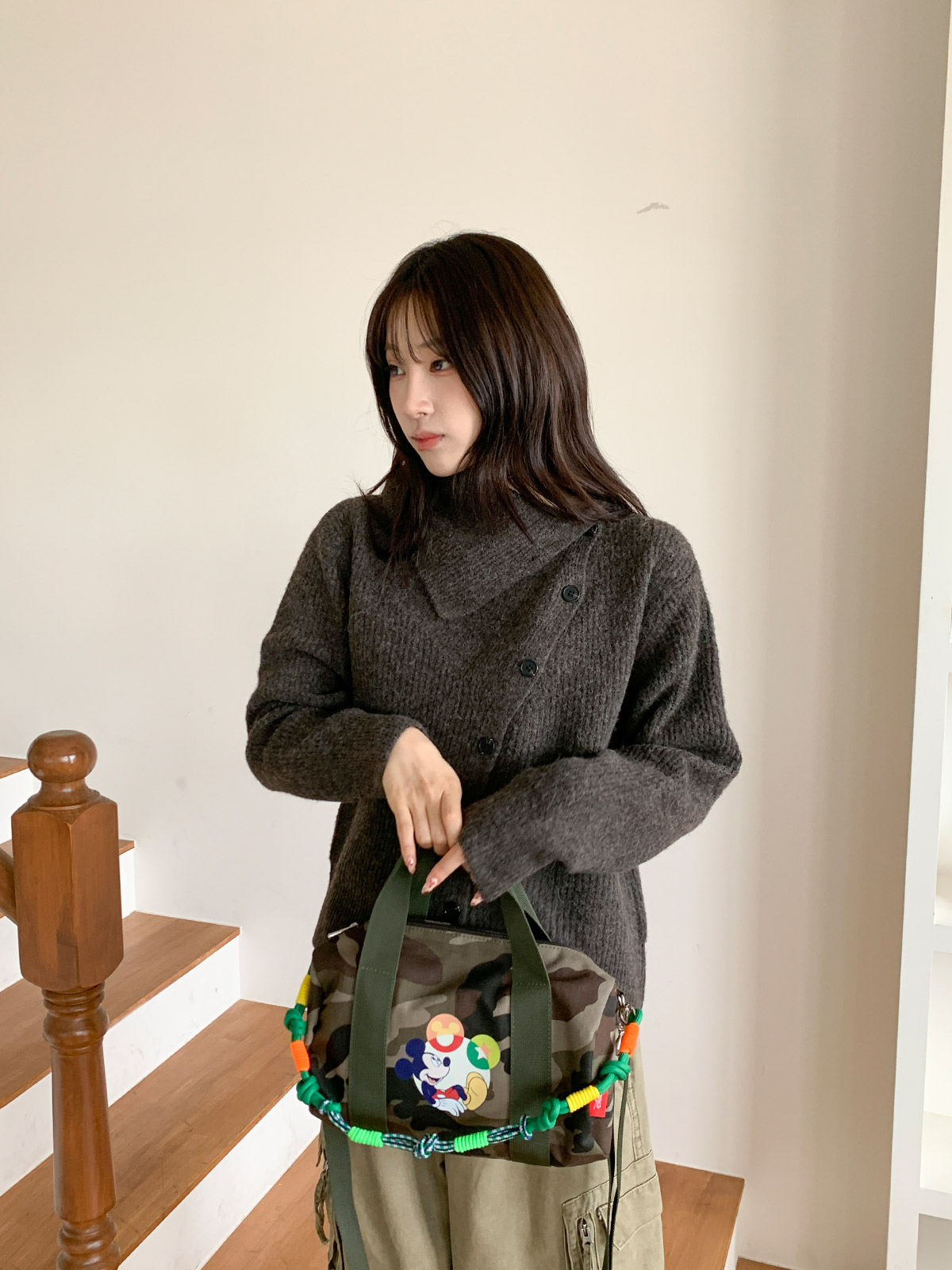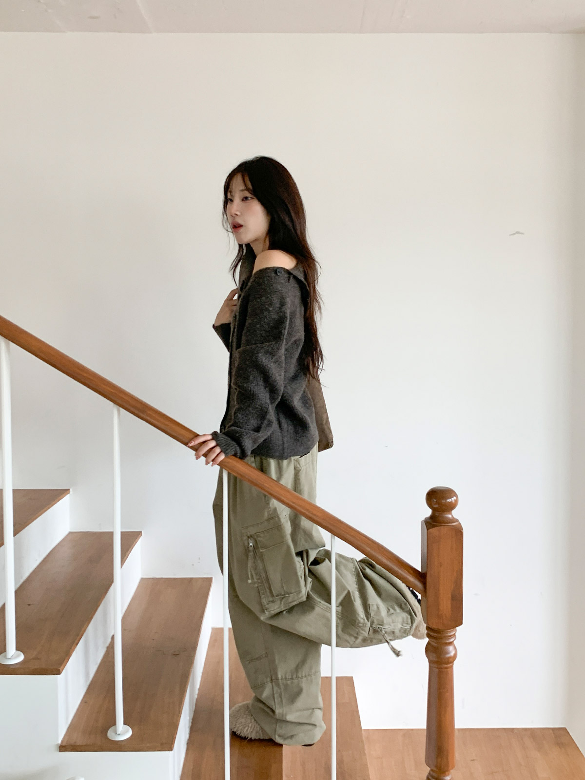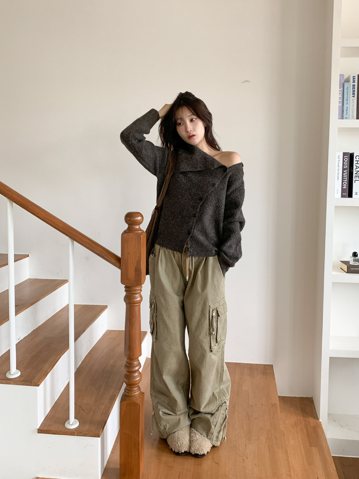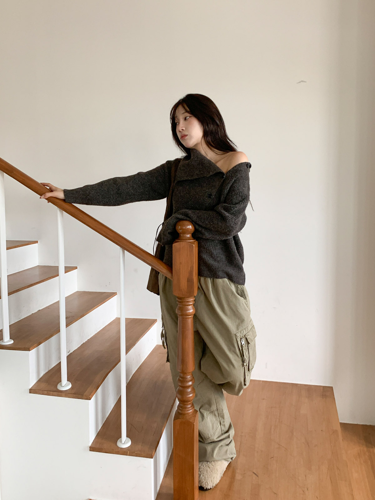 포인트 되는 코디로 딱인 언발 울 니트 가디건으로