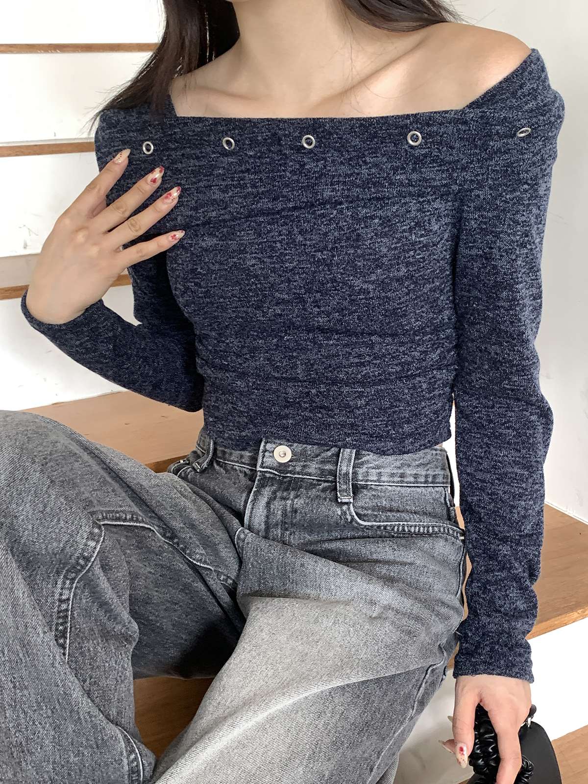 #니트#라운드넥니트#여성니트#데일리니트#니트코디#데일리코디#페미닌#러블리#캐쥬얼#데일리#오프숄더니트#연말룩