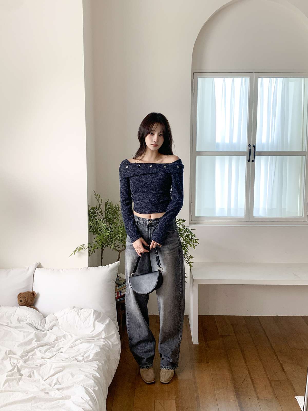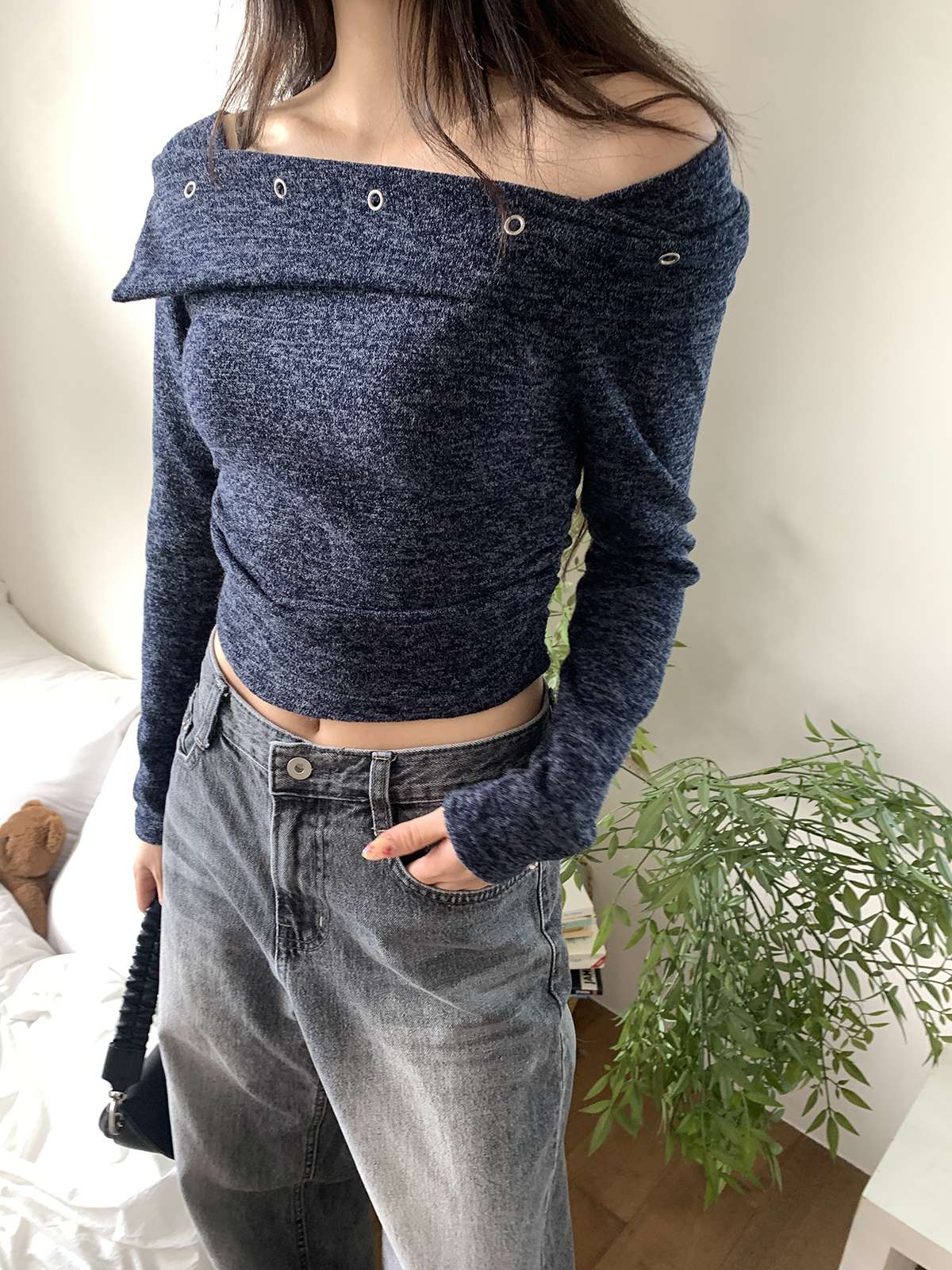 데이트룩,연말룩,기념일에 포인트로 입기 좋은 오프숄더 니트