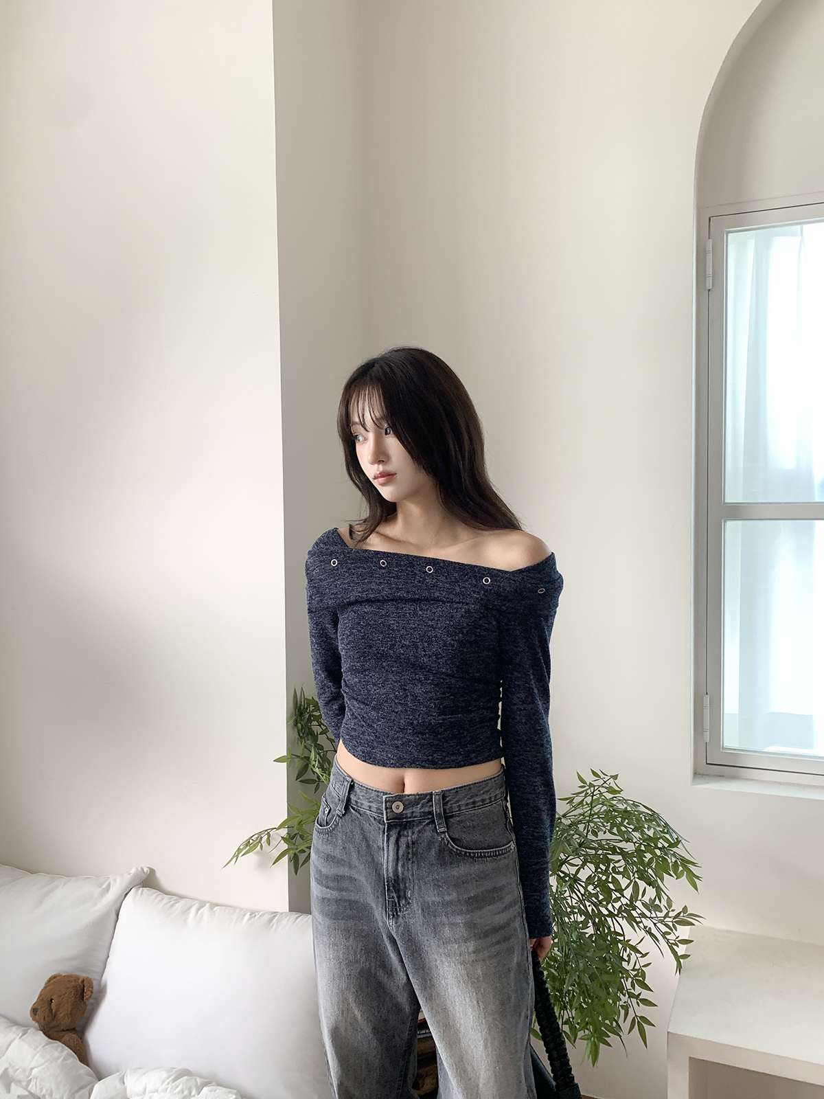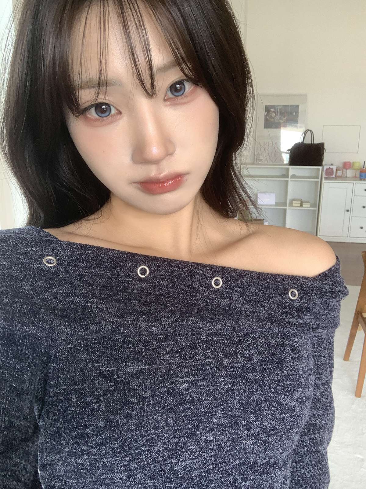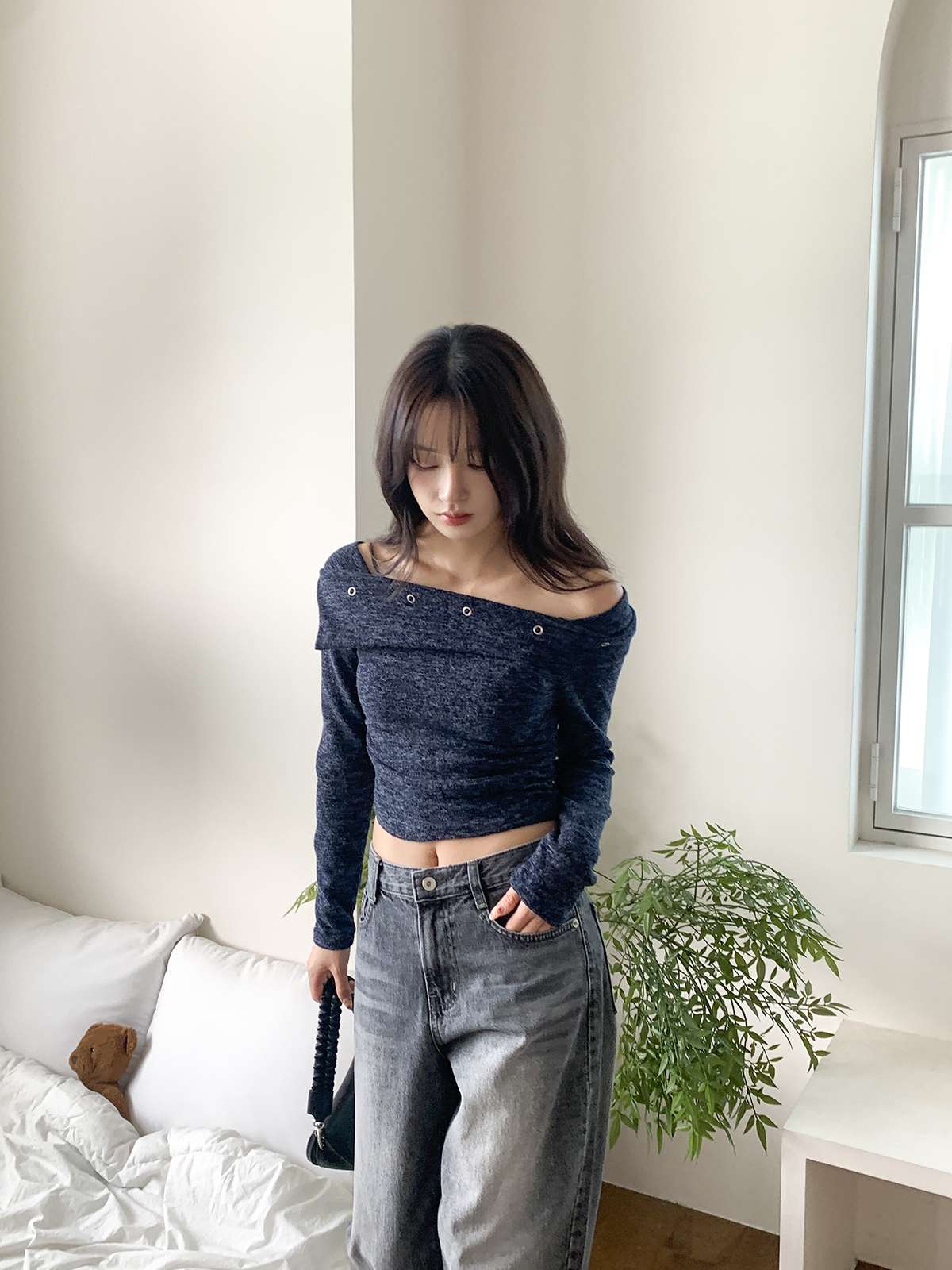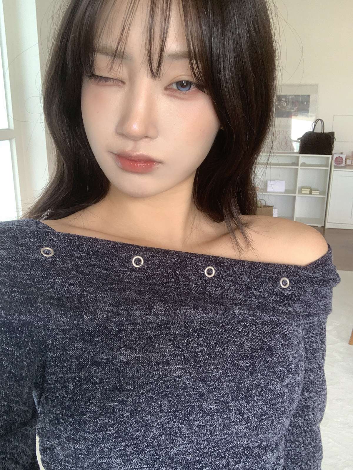 오프숄더로 러블리하고 여리여리하게 포인트 줄 수 있는 오프숄더 니트로