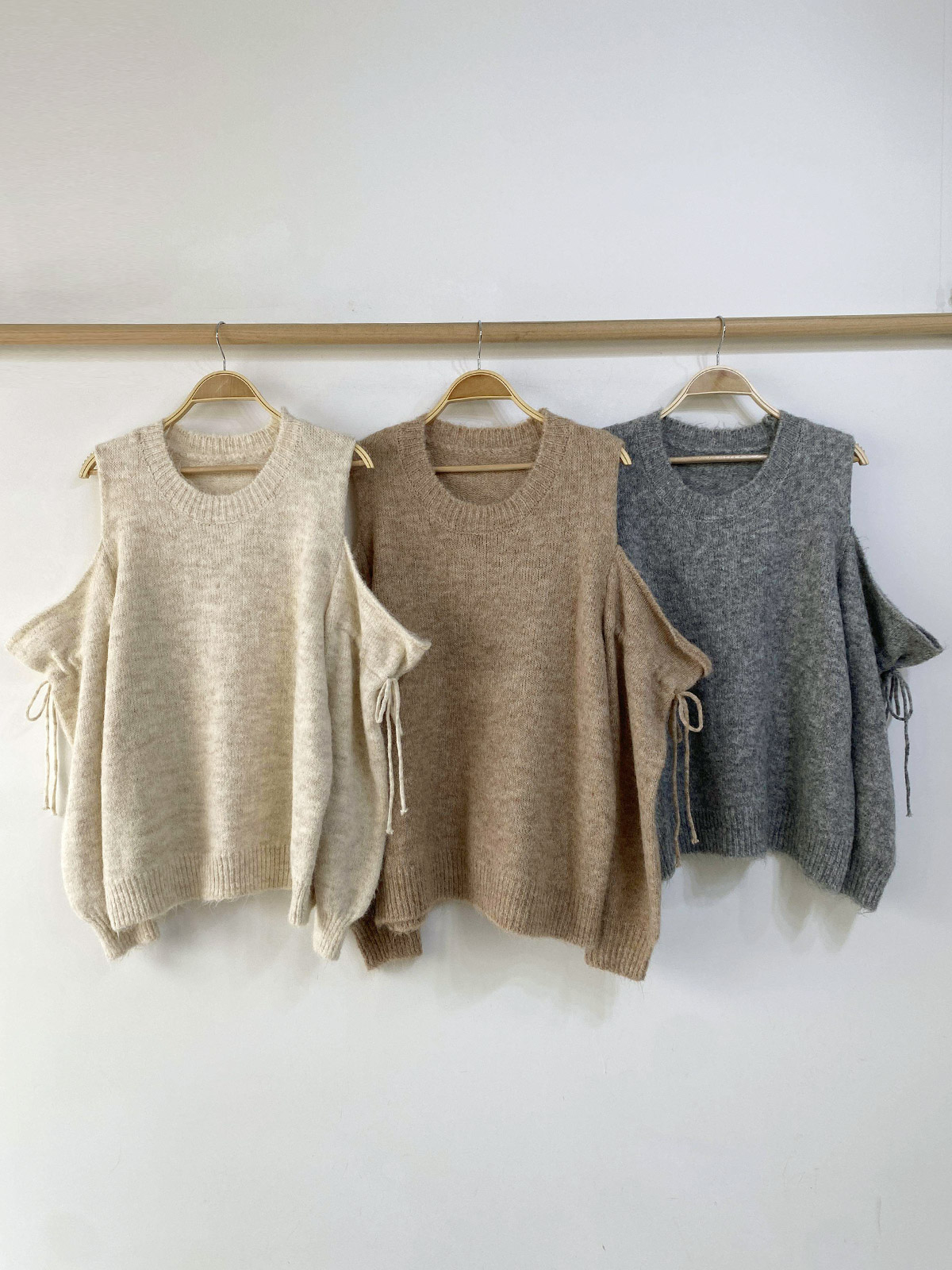 포근한 무드를 주는 어깨 트임 니트입니다!